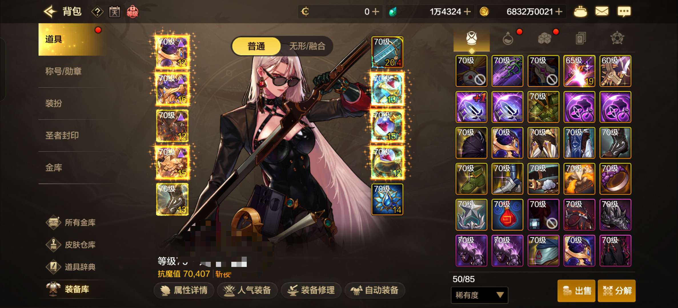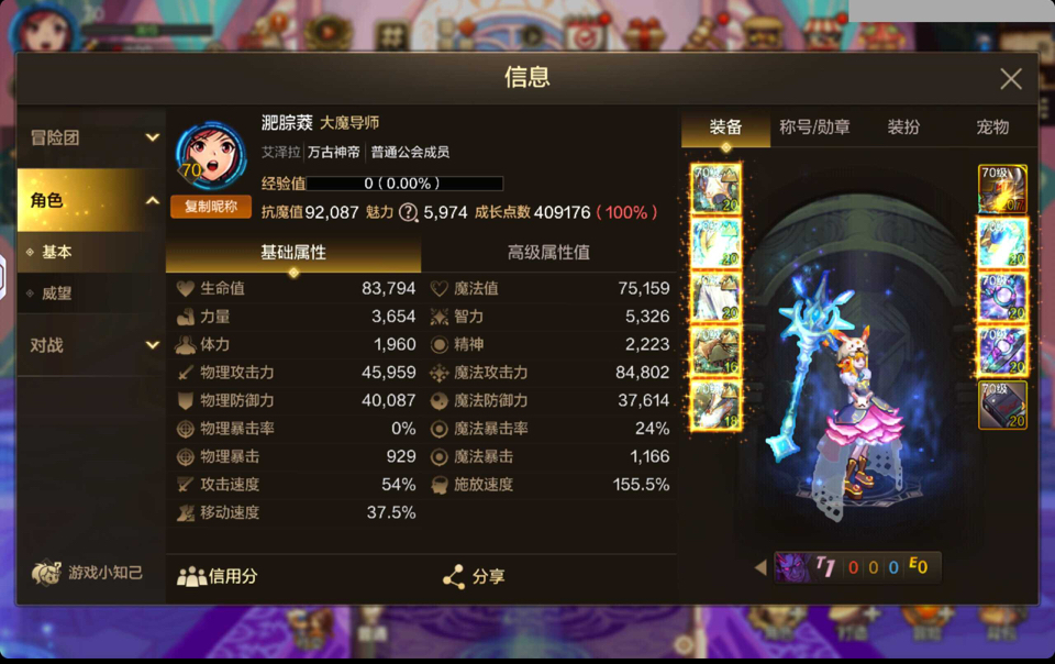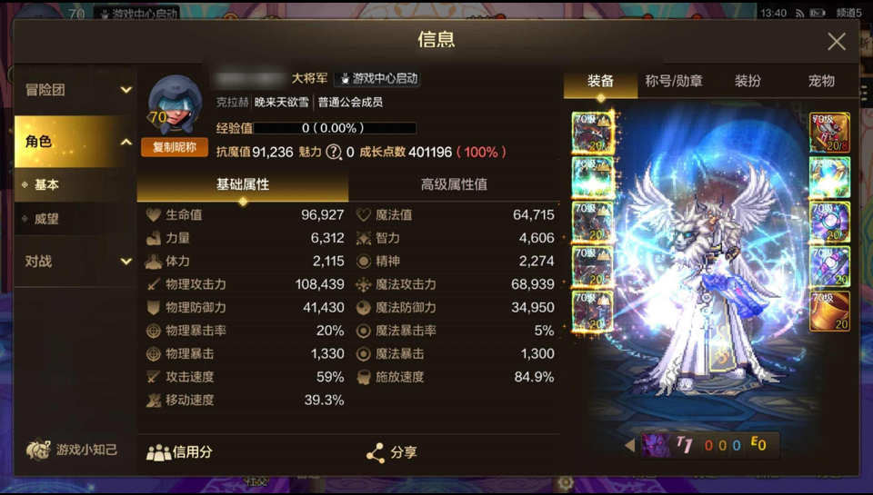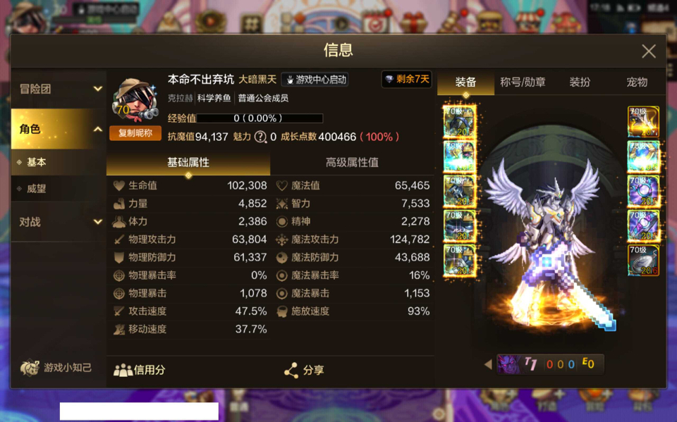 满级苍穹之翼天空刃影7w抗魔,加20武器,一张20强化卷,周年称号光环,复古武器装扮。
