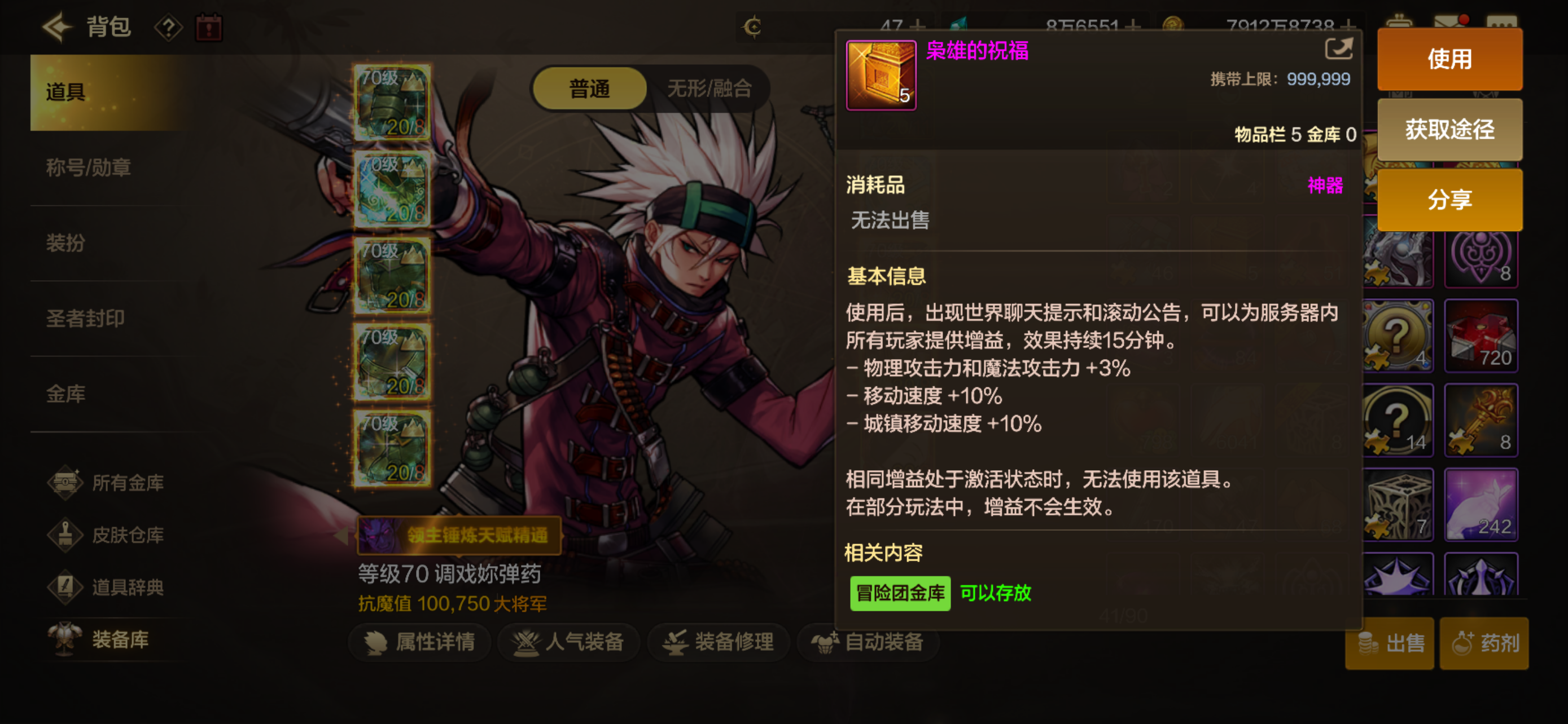 荒古手弩9.22万抗魔,副c小号一堆,没时间玩了