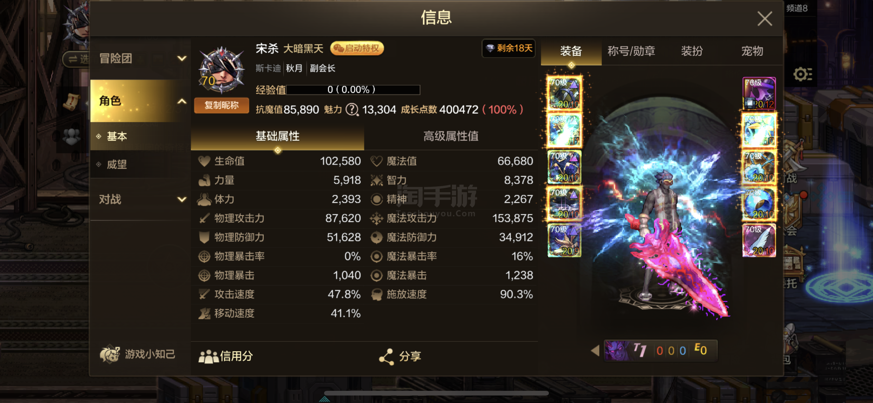6万2魔抗,7万5物攻,歌颂魔抗5万 图片没更新