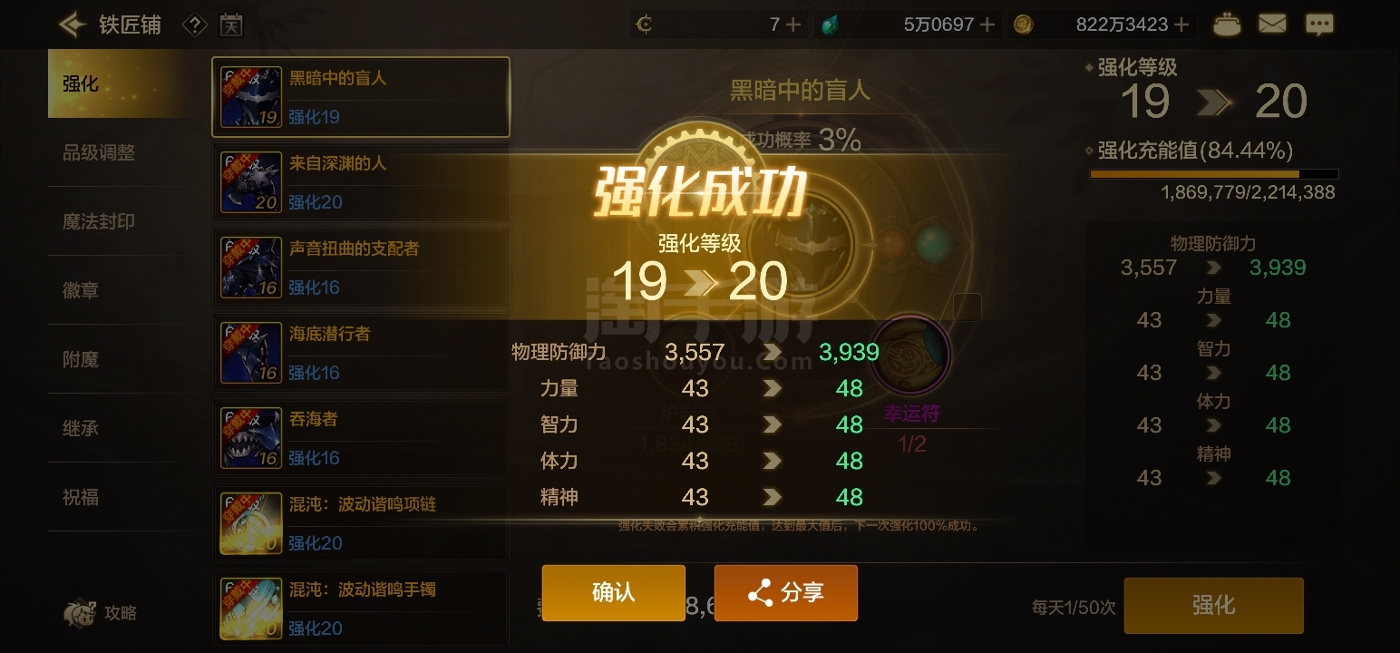 天空套狂战士,全身强化20,微章全是8到9级,共5个角色