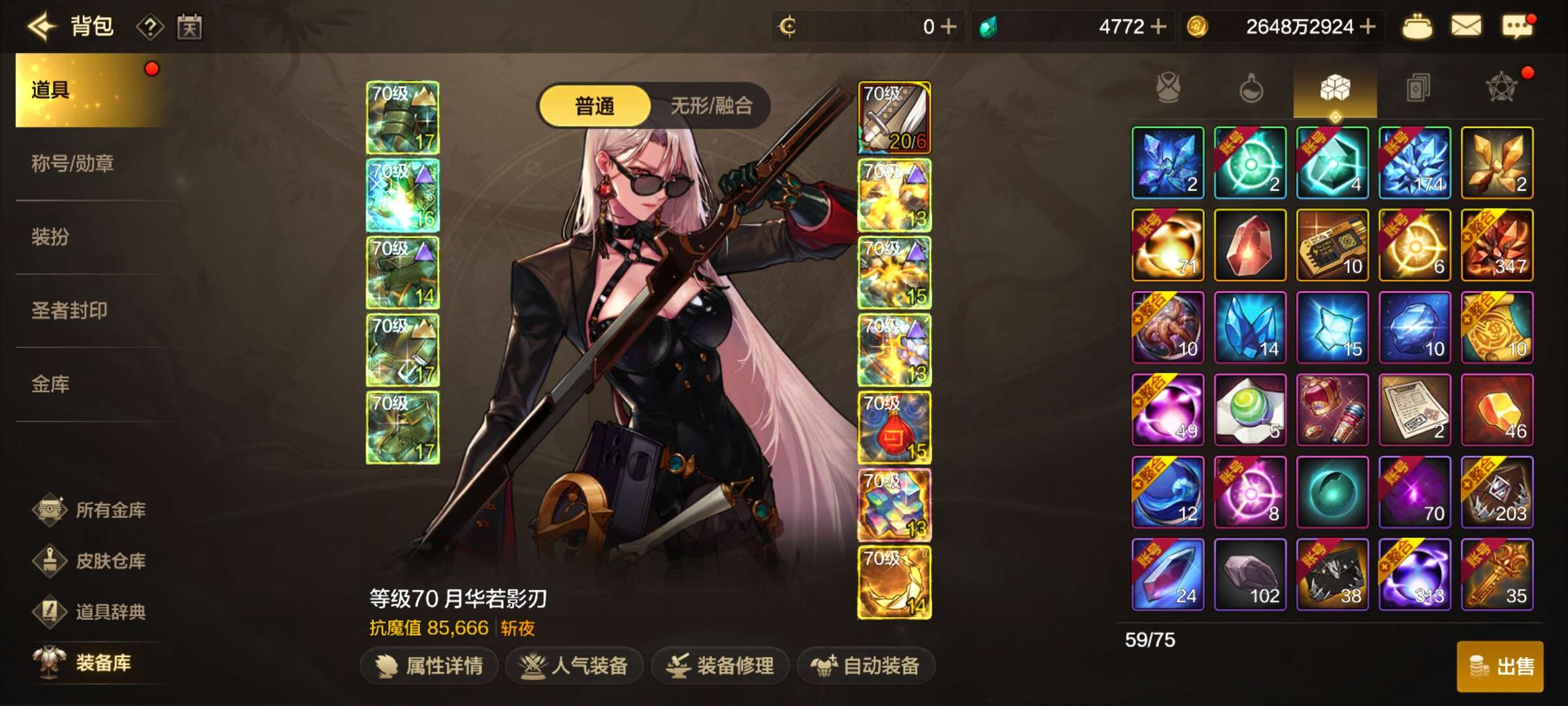 满级号,刃影86000抗魔,属强5+3 武器强化加20,找回包赔