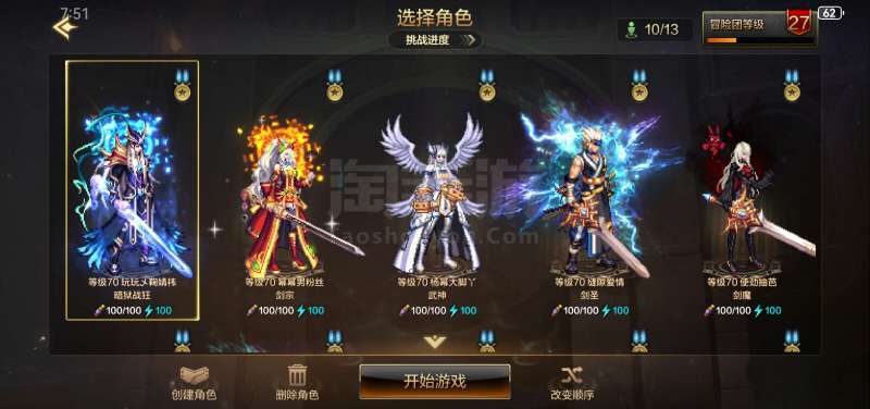 DNF手游【安卓QQ】看一看 7.6万抗魔剑豪 五个打团角色满级角色