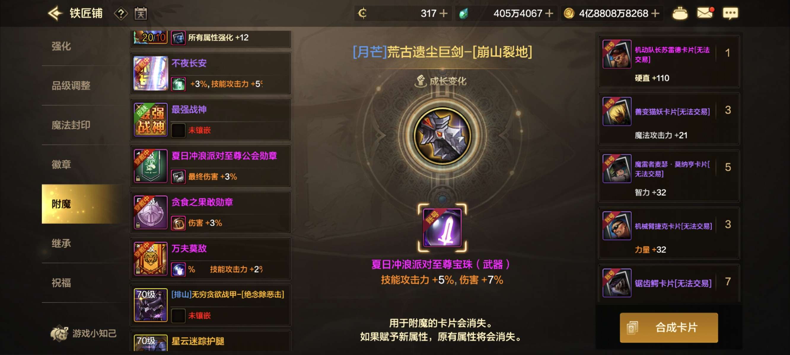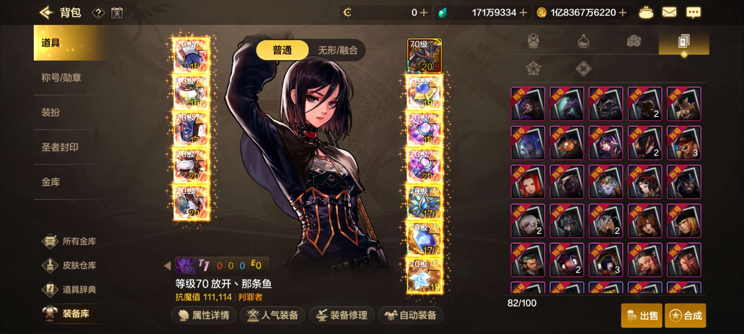 累充1w2,旧满尊都有,武器10其余7,100w泰拉,腰带附魔的龙卡