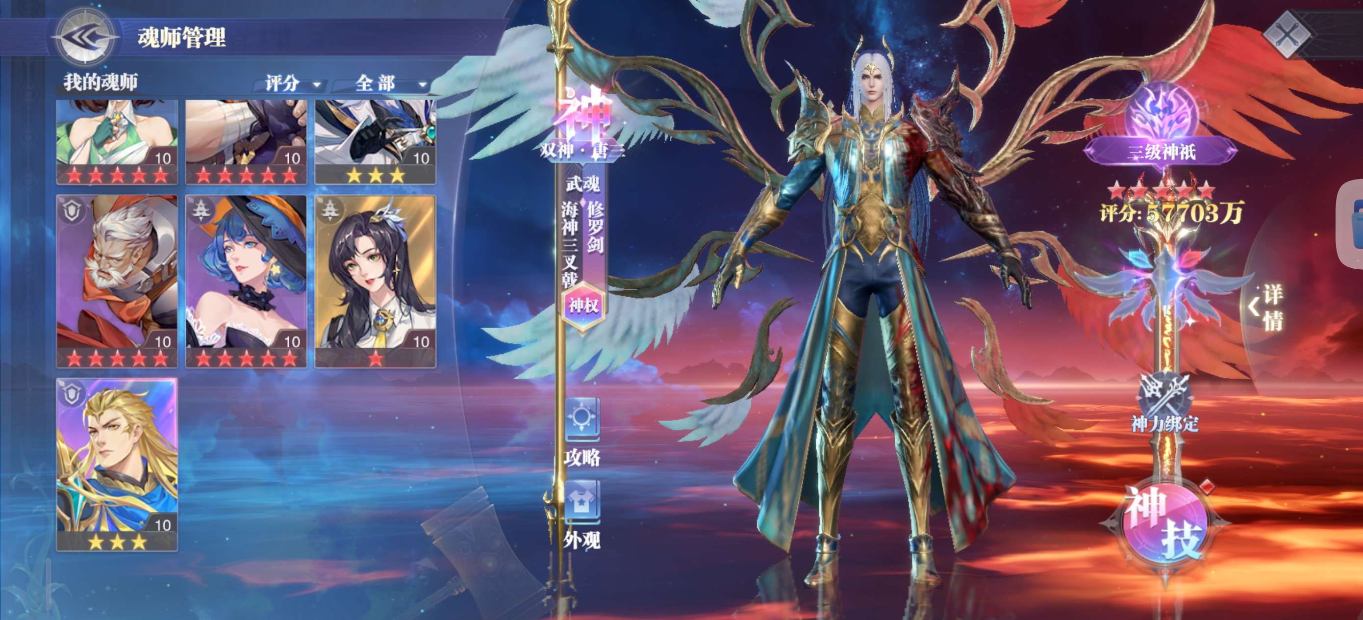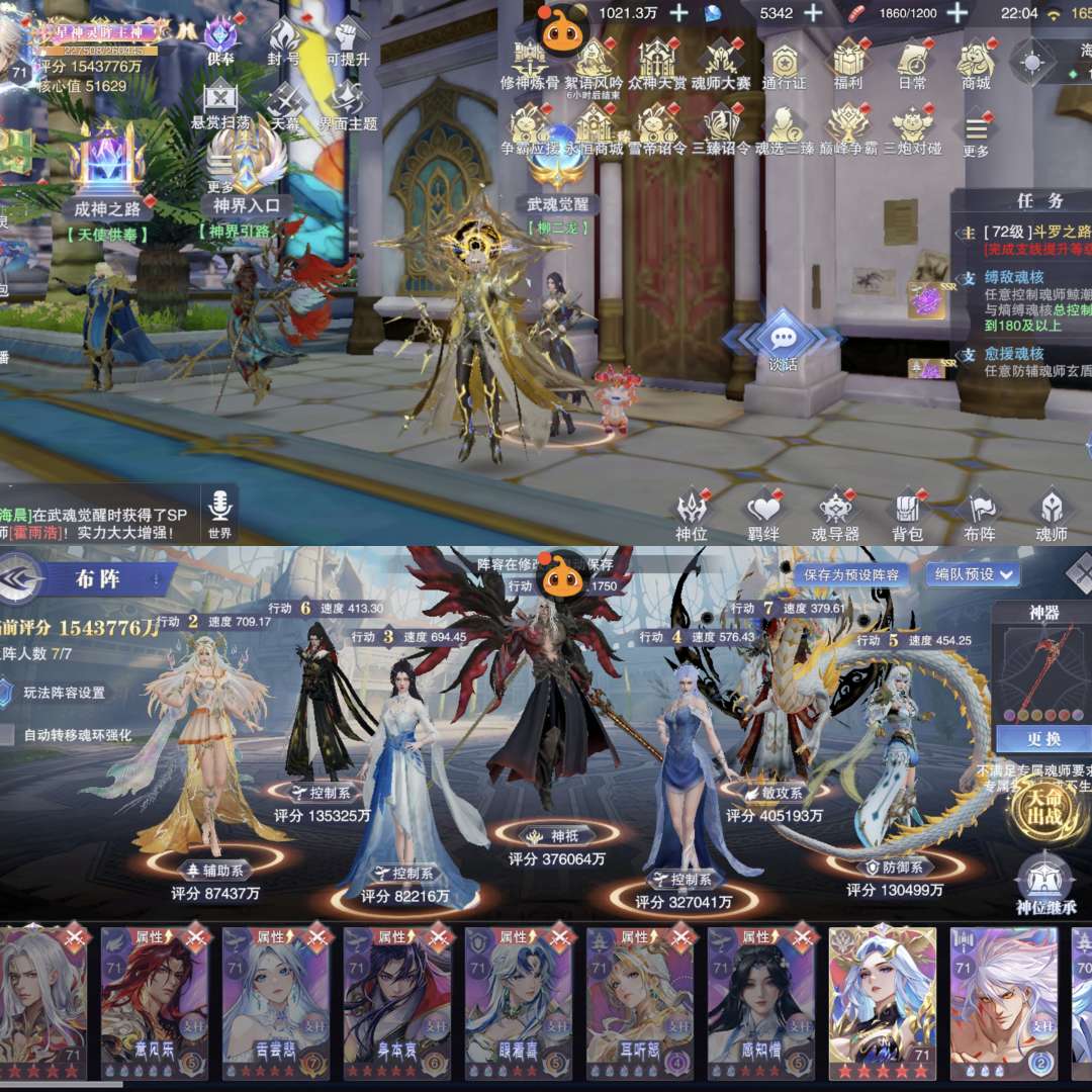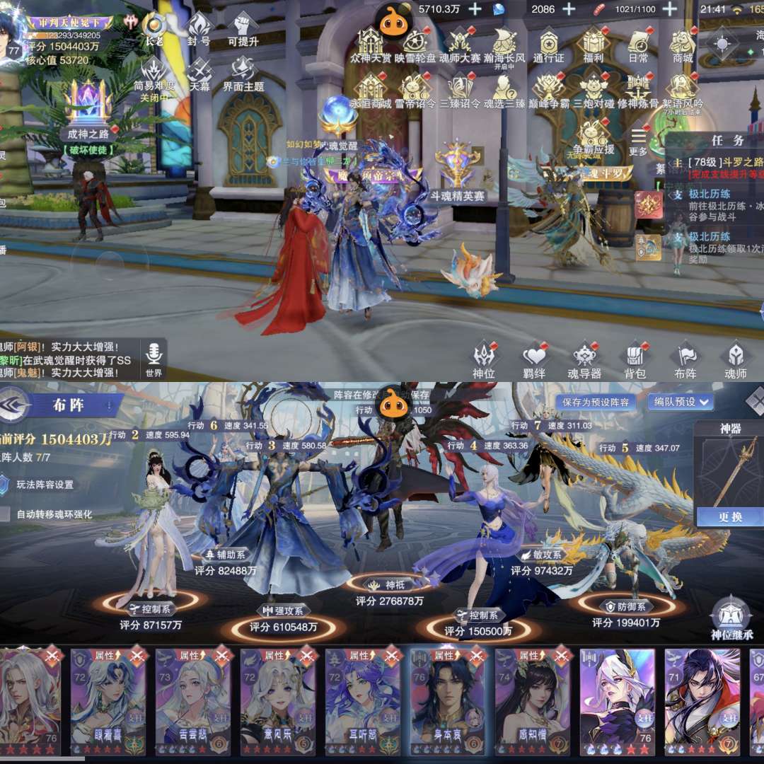 150亿战力。77级。彩5至臻皮神王霍雨浩22sp。2魂铠。3专双神 拓跋云。4专阿银 蝶神。1专