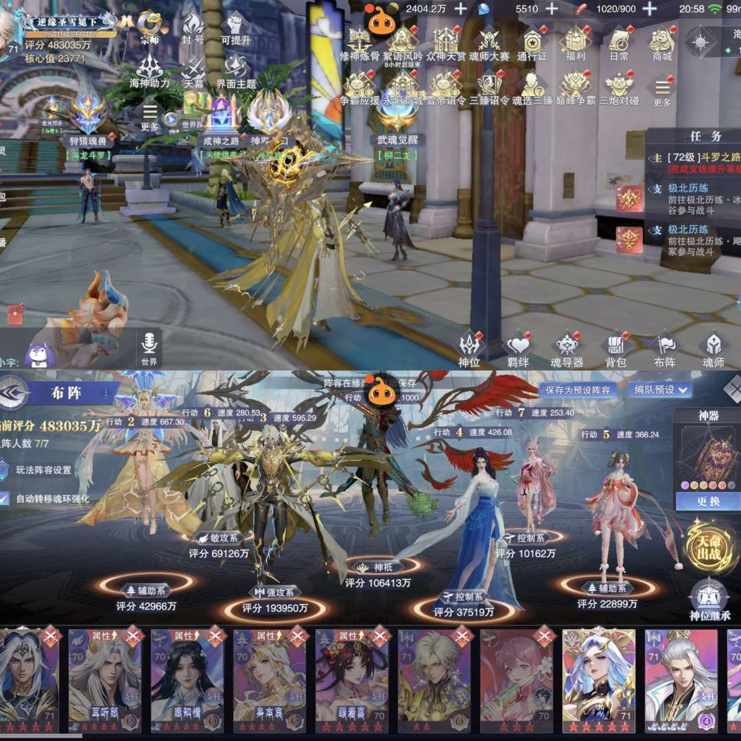 主神 魔魂 灵眸 星神 逆缘 圣雪 百相 小舞 织金称号。5200钻石。154亿。71级。供奉。神