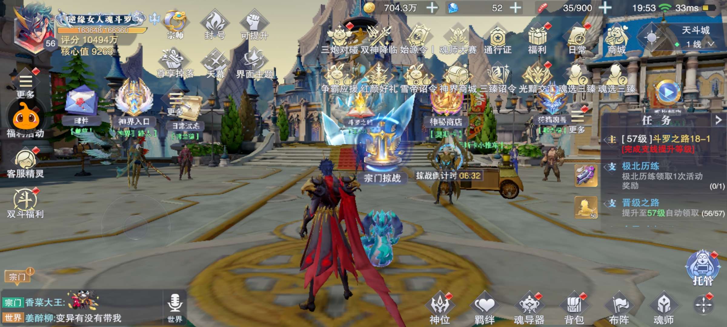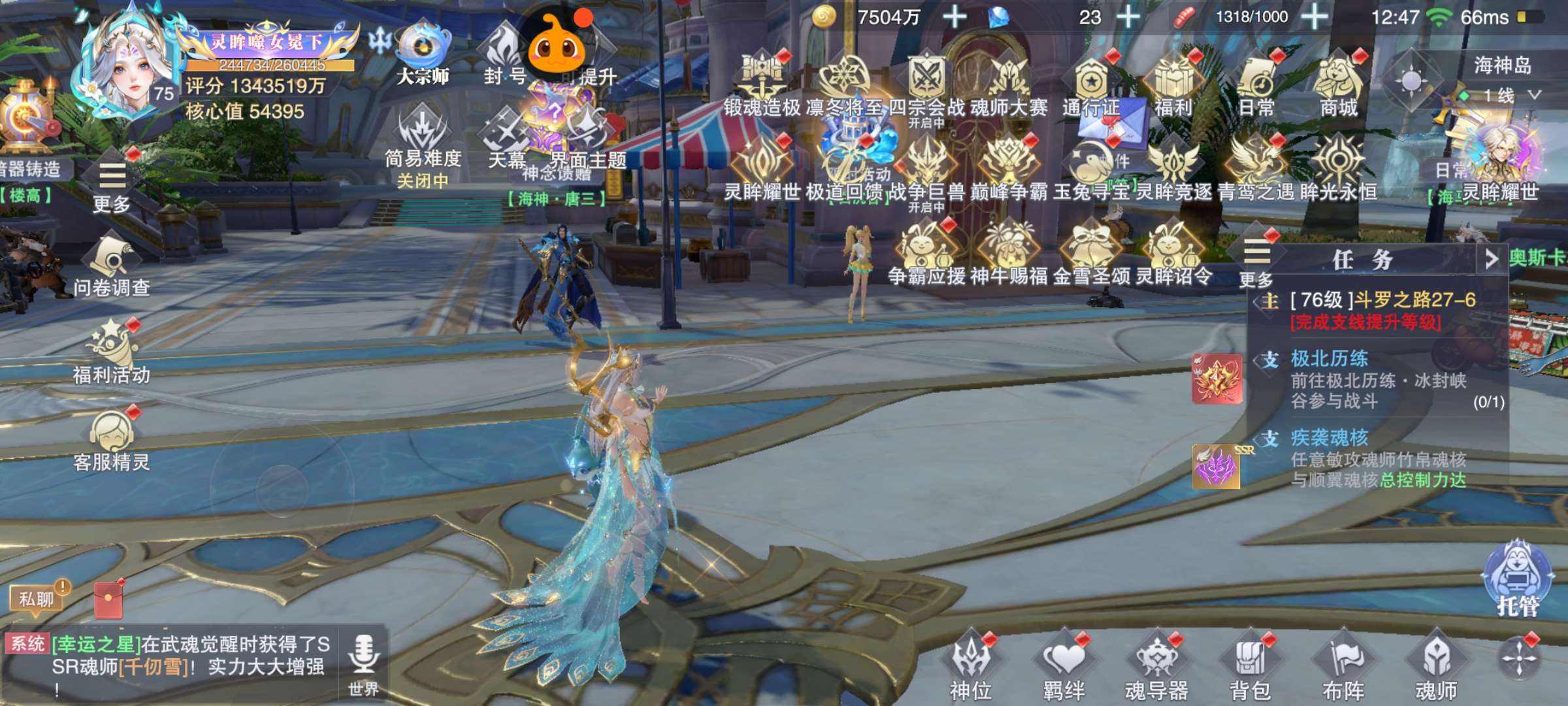 78级600亿榜三!世界等级75!魔魂 神使等称号4情侣骨!红胸针!17神环!100万本源灵眸1