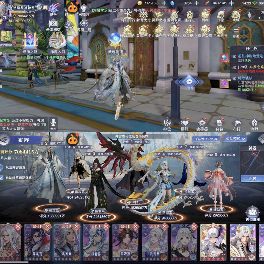 708亿战力。供奉。78级。彩5神王霍雨浩24sp。彩5剑仙。魔魂 灵眸 星神 神使 逆缘 圣雪