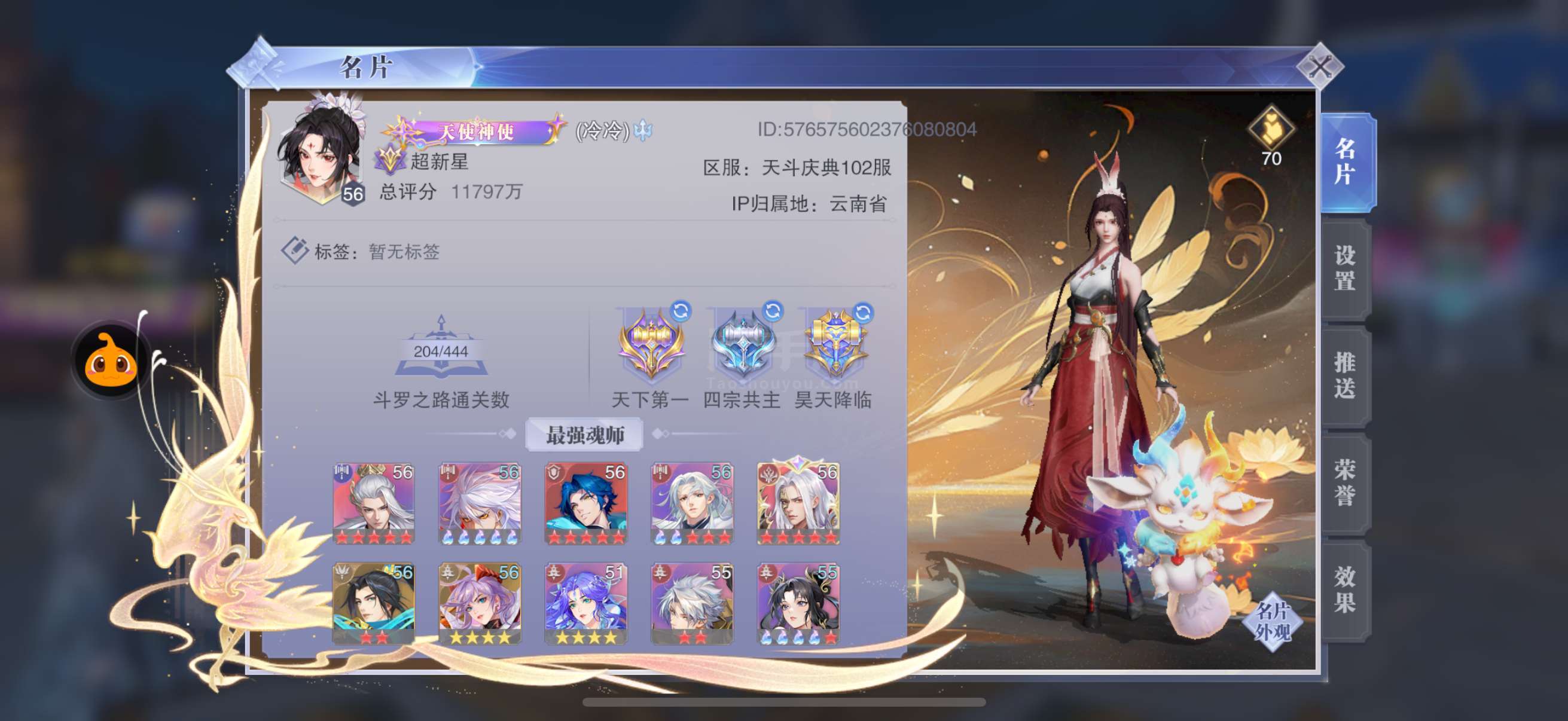 天斗官服102 织金 神使封号 双月卡 4个修罗神环 一个天使环 一个九彩环 两个神赐