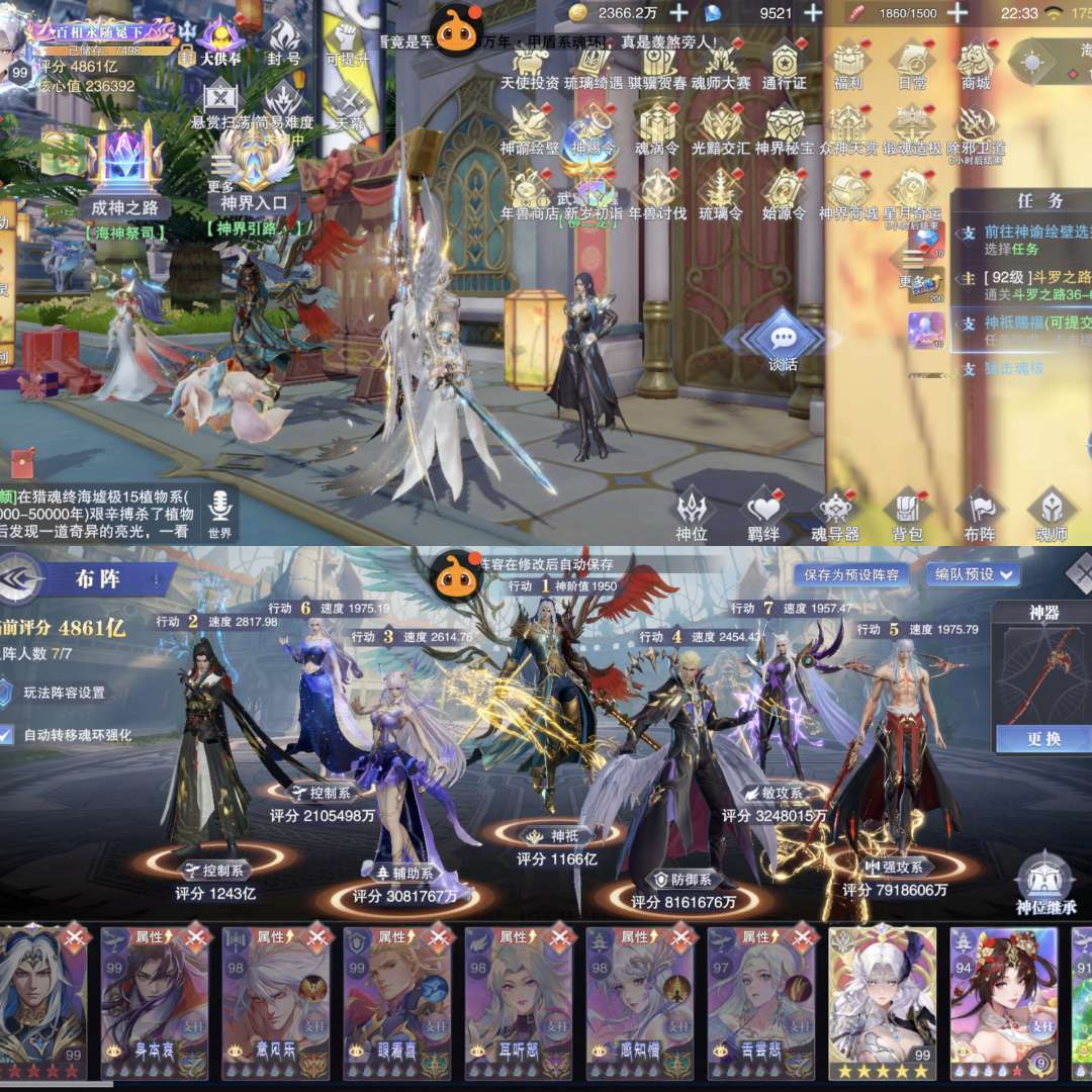 4861亿战力。大供奉。光暗大雪28sp。彩1大荣。130抽。9500钻石。至臻皮灵魂体小舞。万壑