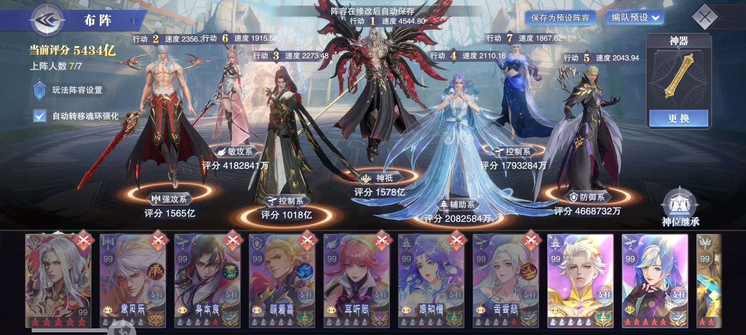 1127亿战力。大供奉。红5十方蓉蓉23sp。业火神诏双神。金皮黑丝大雪。至臻皮灵魂体小舞。2魂