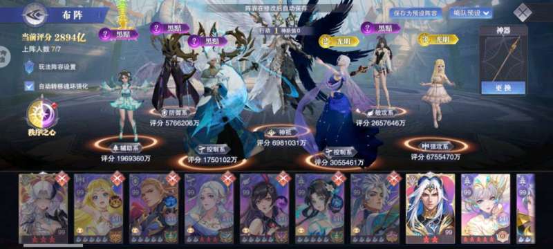 39亿战力。70级。彩2大荣22sp。彩5剑仙。业火神诏双神。万壑松风剑仙。黑丝大雪。2专双神