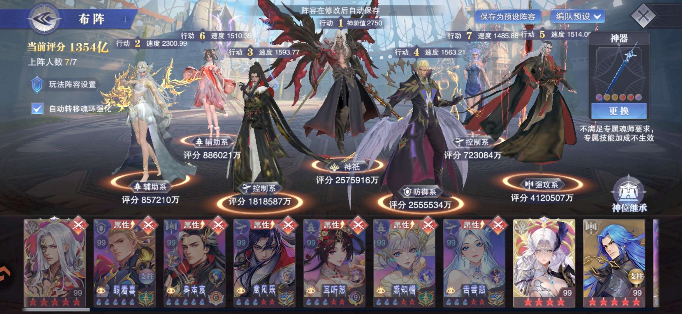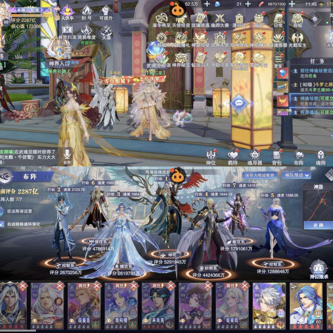 2287亿战力。大供奉。红1十方蓉蓉25sp。彩5剑仙。5专修唐1幻金。4专千道流1幻金。5专蓉蓉