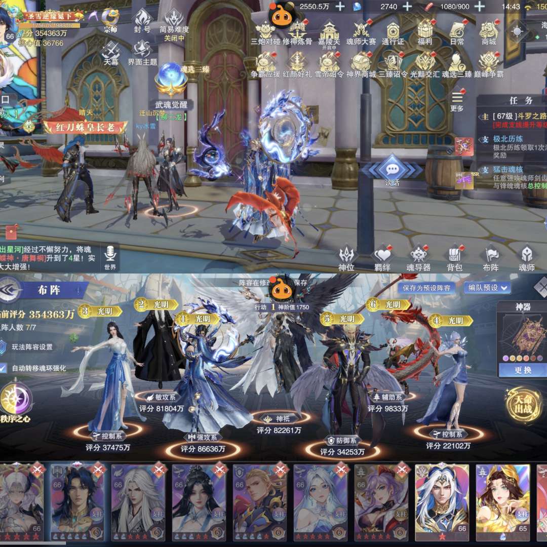 35亿。66级。彩5至臻皮神王霍雨浩14sp。3专神雪 王林。1专1幻神王。2专李慕婉。8魂导器