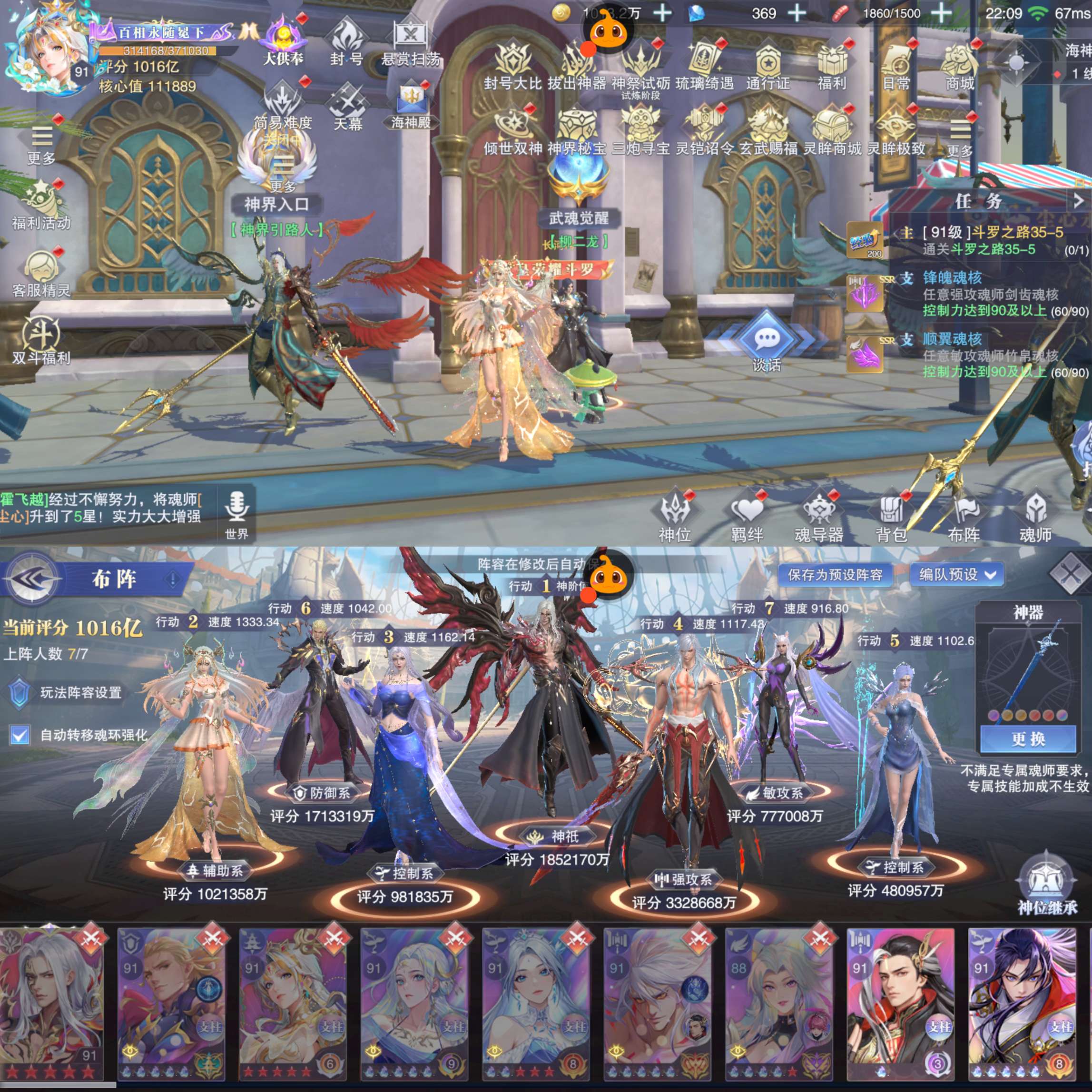 1016亿战力。大供奉。红5十方蓉蓉23sp。业火神诏双神。金皮黑丝大雪。至臻皮灵魂体小舞。2魂