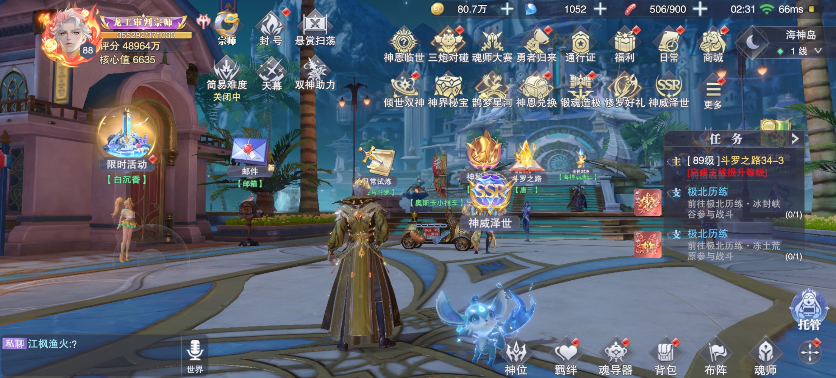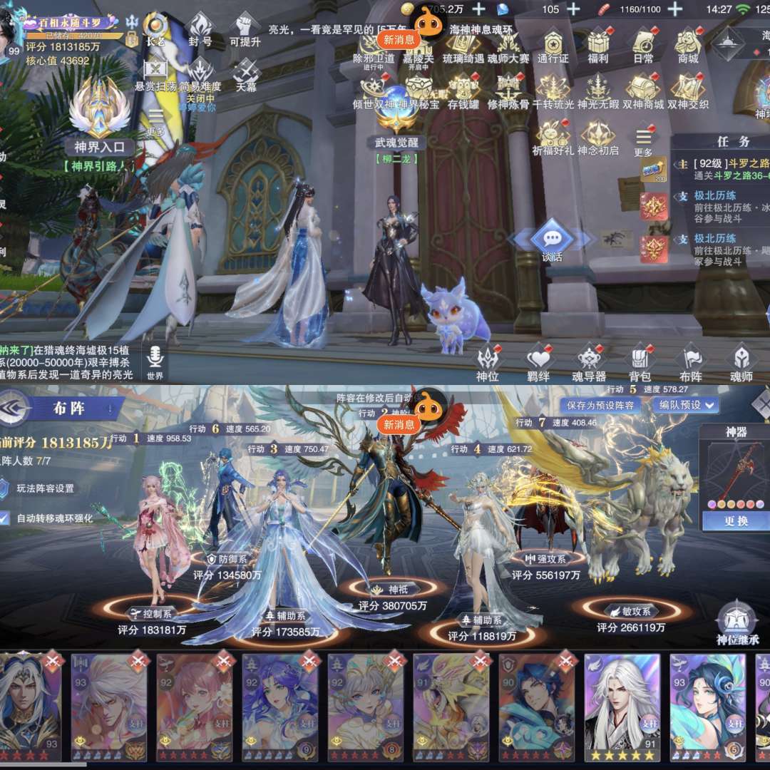 统御供奉极品号,92级,114亿评分,17个SP魂师,其他ssr+,ssr魂师都有