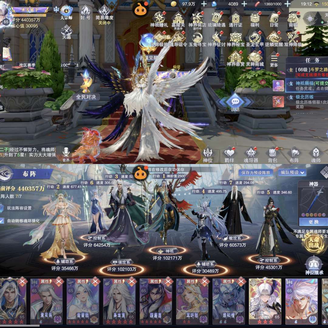 43亿战力。65级。红3光暗大雪16sp。111抽4千钻石。3专双神 大白。3专1幻雪帝。2专王林