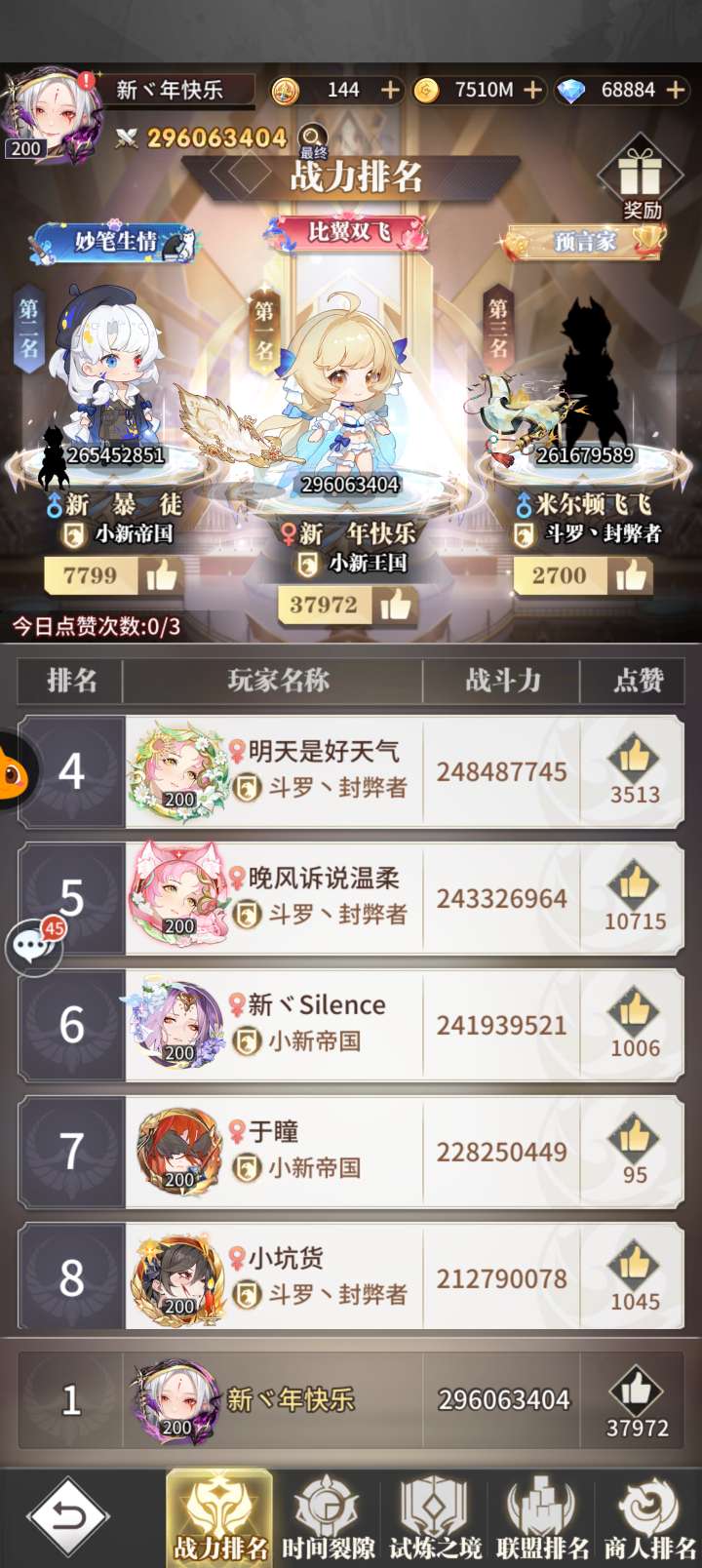 七里服,3亿战力未断氪。25w钻石可小刀