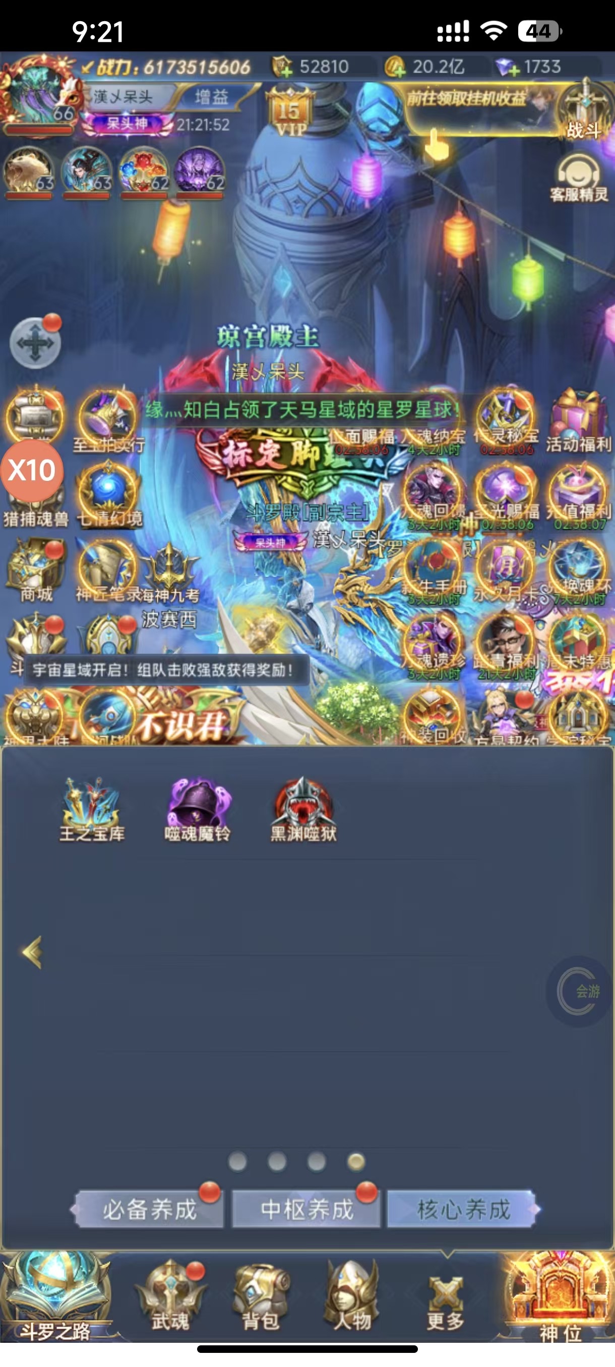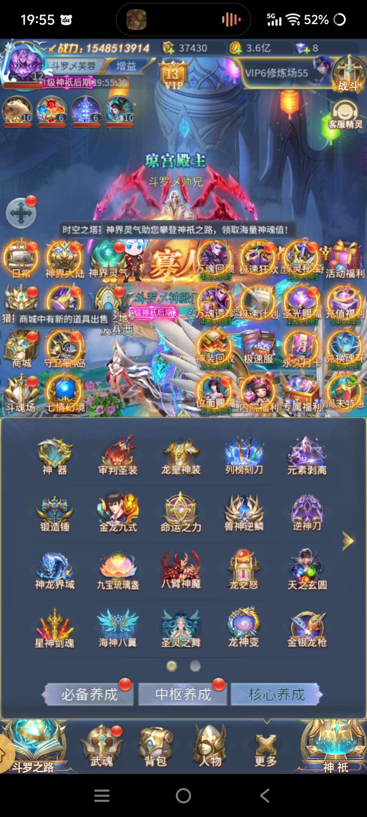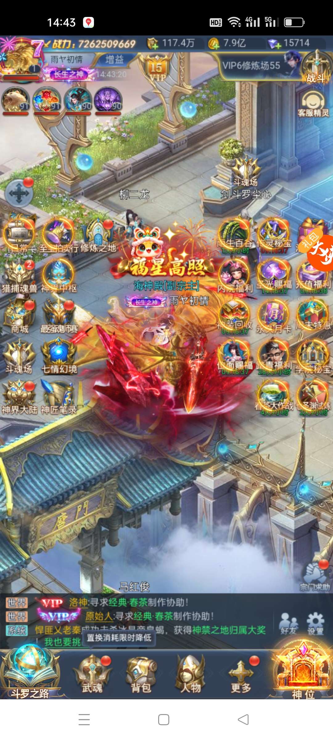 斗罗大陆三级神6亿多战,永久月卡,三排多大奖,好几个满大奖,中枢材料多,自己的账号,随时安全换绑