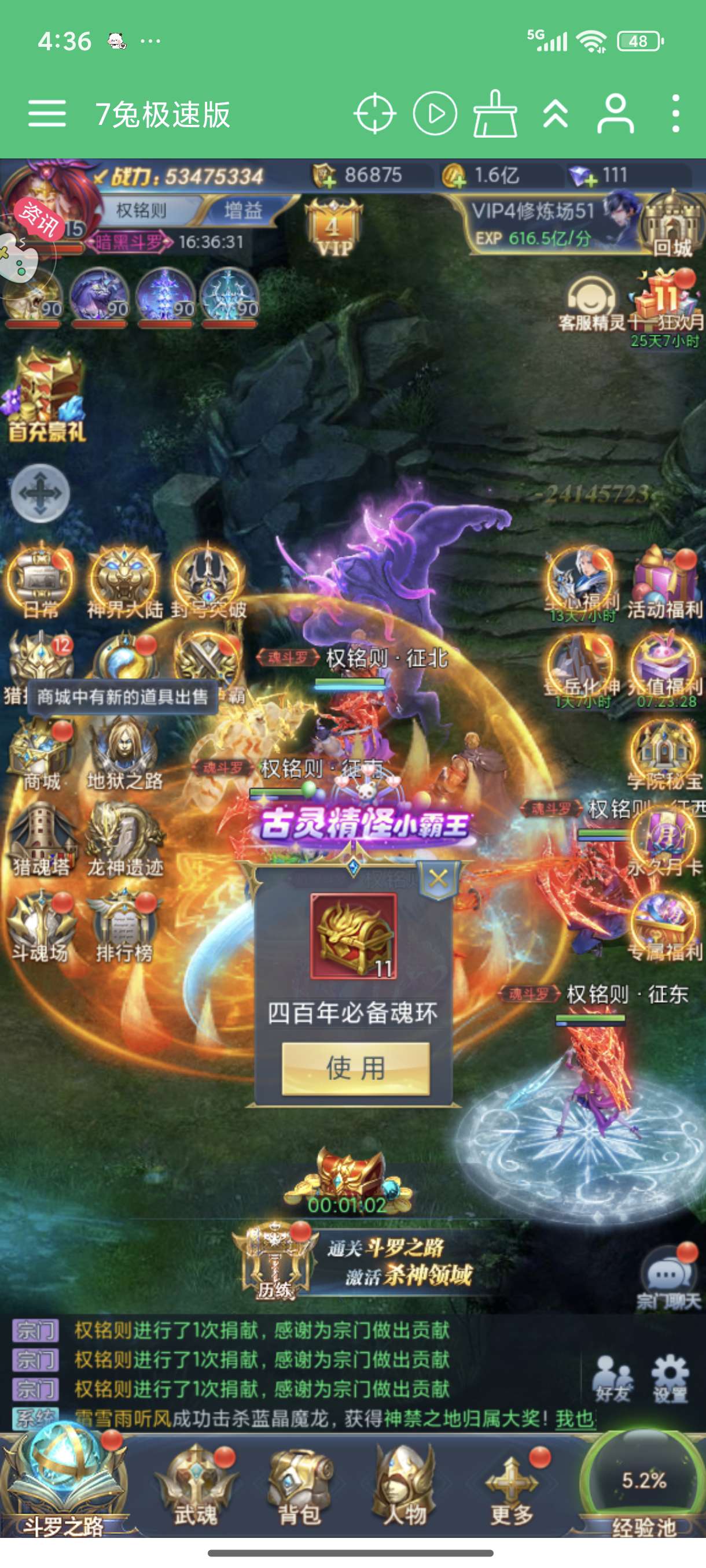 斗罗大陆H5【安卓官方】出正版服,全网互通,50亿战力,四神套,4套草皇,两套绝魂导器,5套魂骨,满真身龙魂圣纹,有永久卡