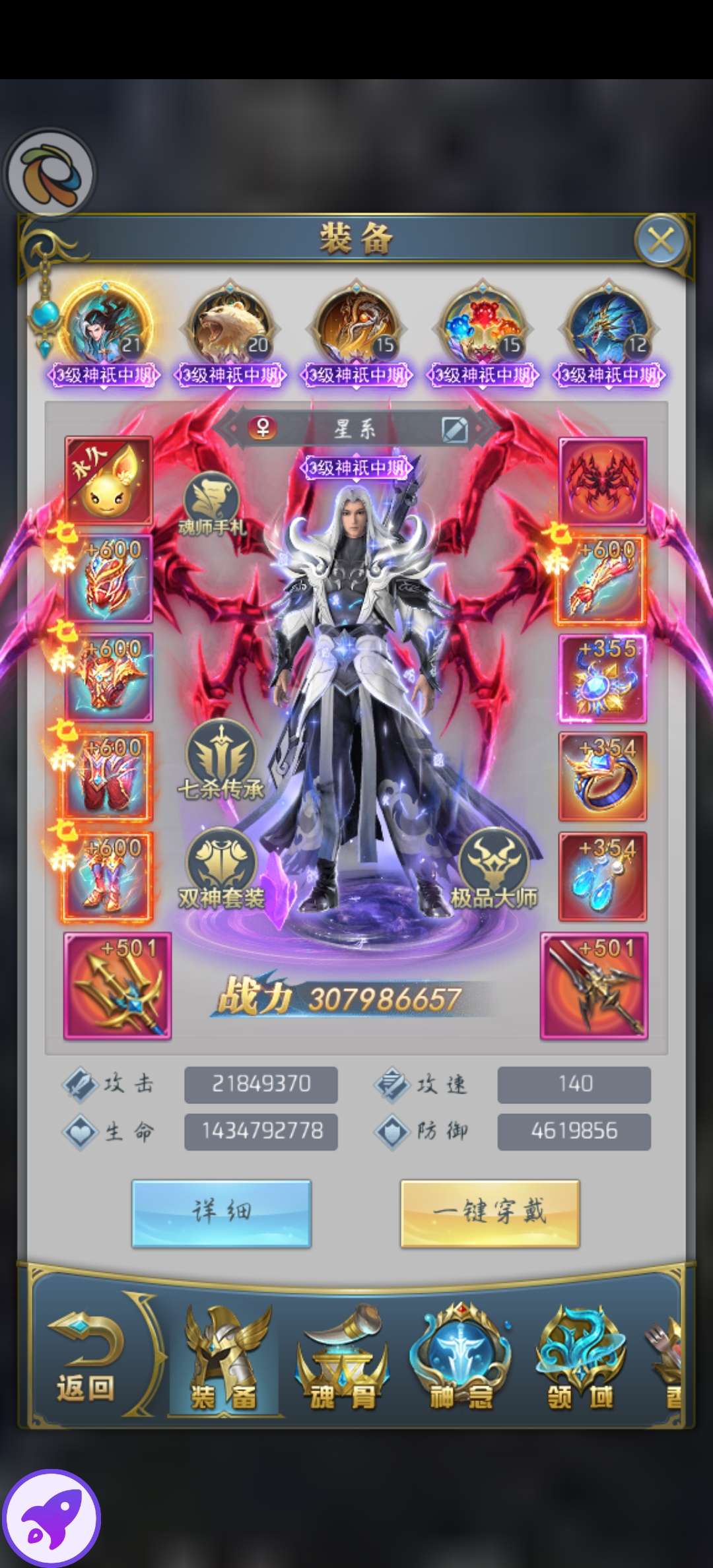 9973区四,两个主城大佬,5套魂骨,一套半彩骨,三套半红骨,有魂导炮和积分,还有一套星空10排大奖