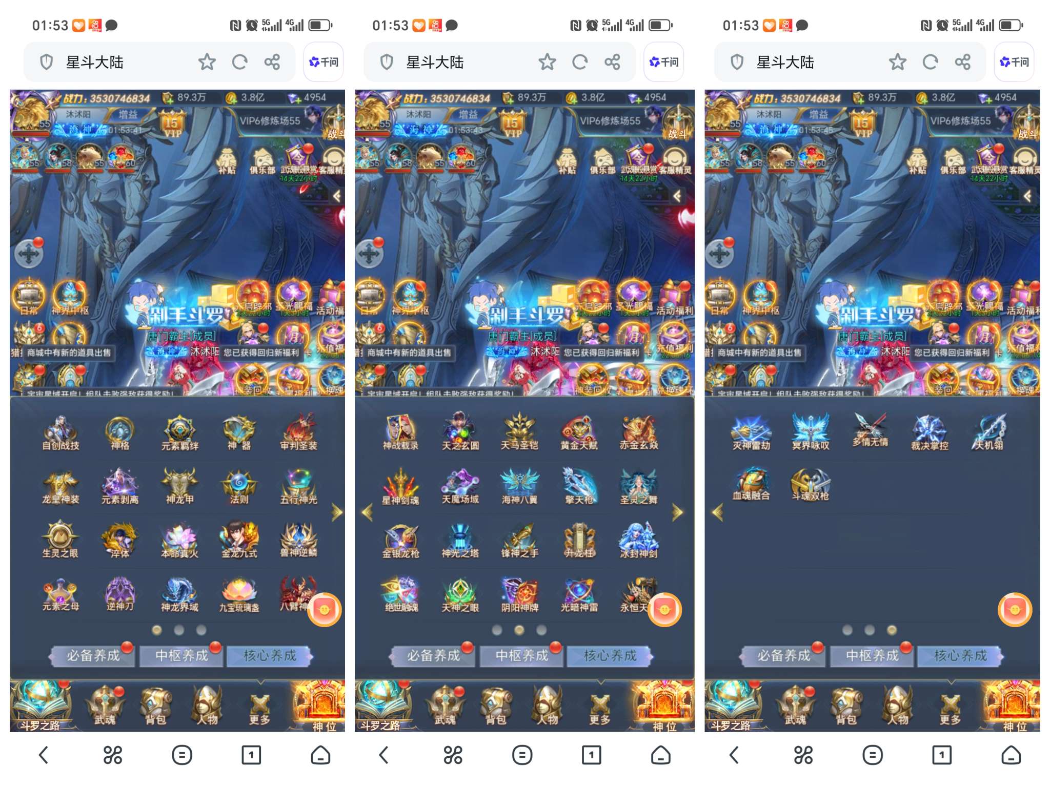 出海神服,全网互通,35亿彩,压战10多亿,2套五字斗铠,1套天使,4套秘法,4套草皇,5套魂骨