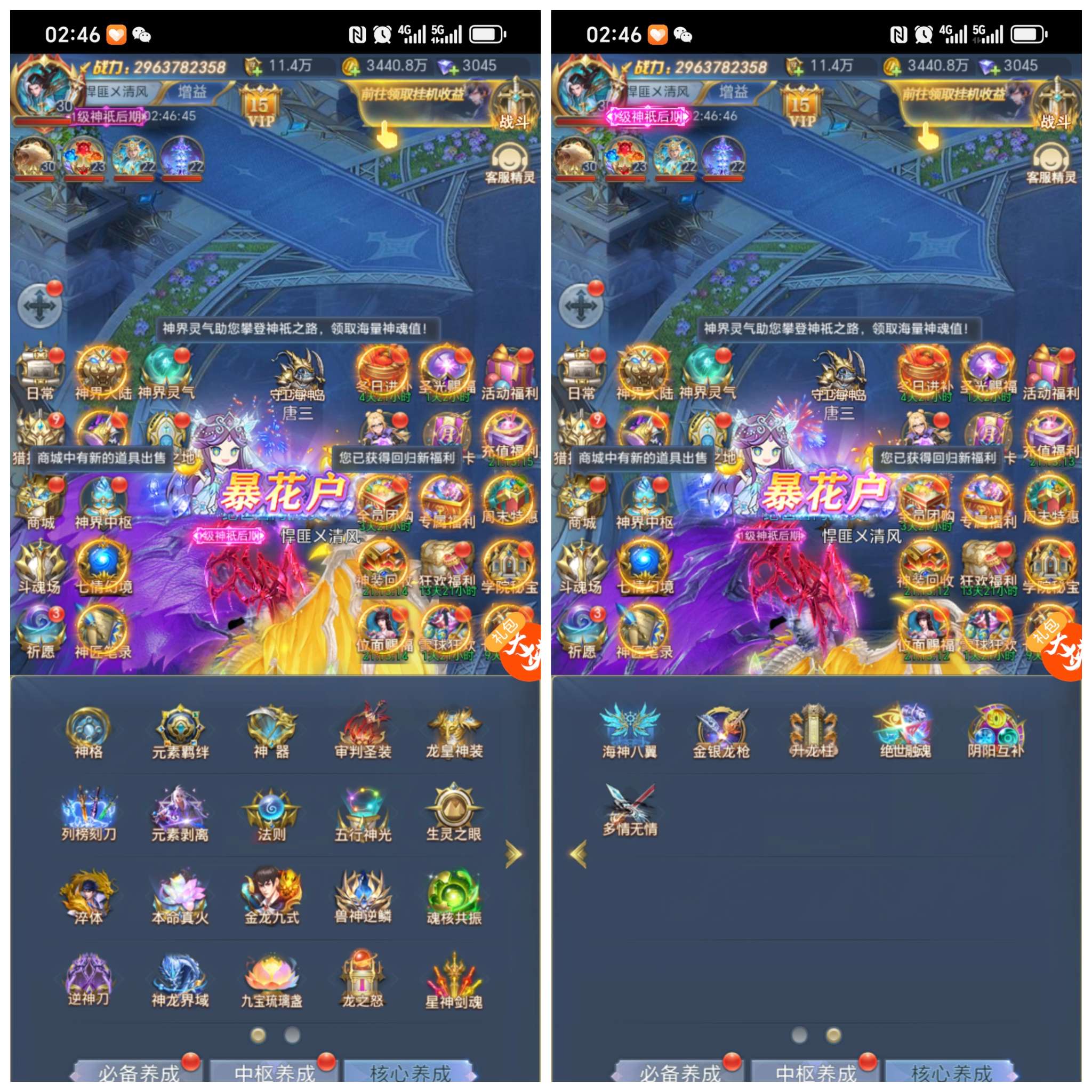 8946区,满积分满大奖,三神套双神器,满审判,满龙皇,循环一到2套,3绝魂导器底子嘎嘎好保留斗密