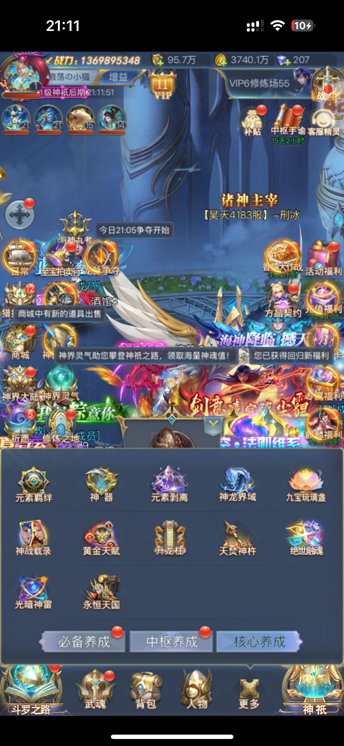 七里 天使极速100服战力4.9 亿 支持换绑,解绑。