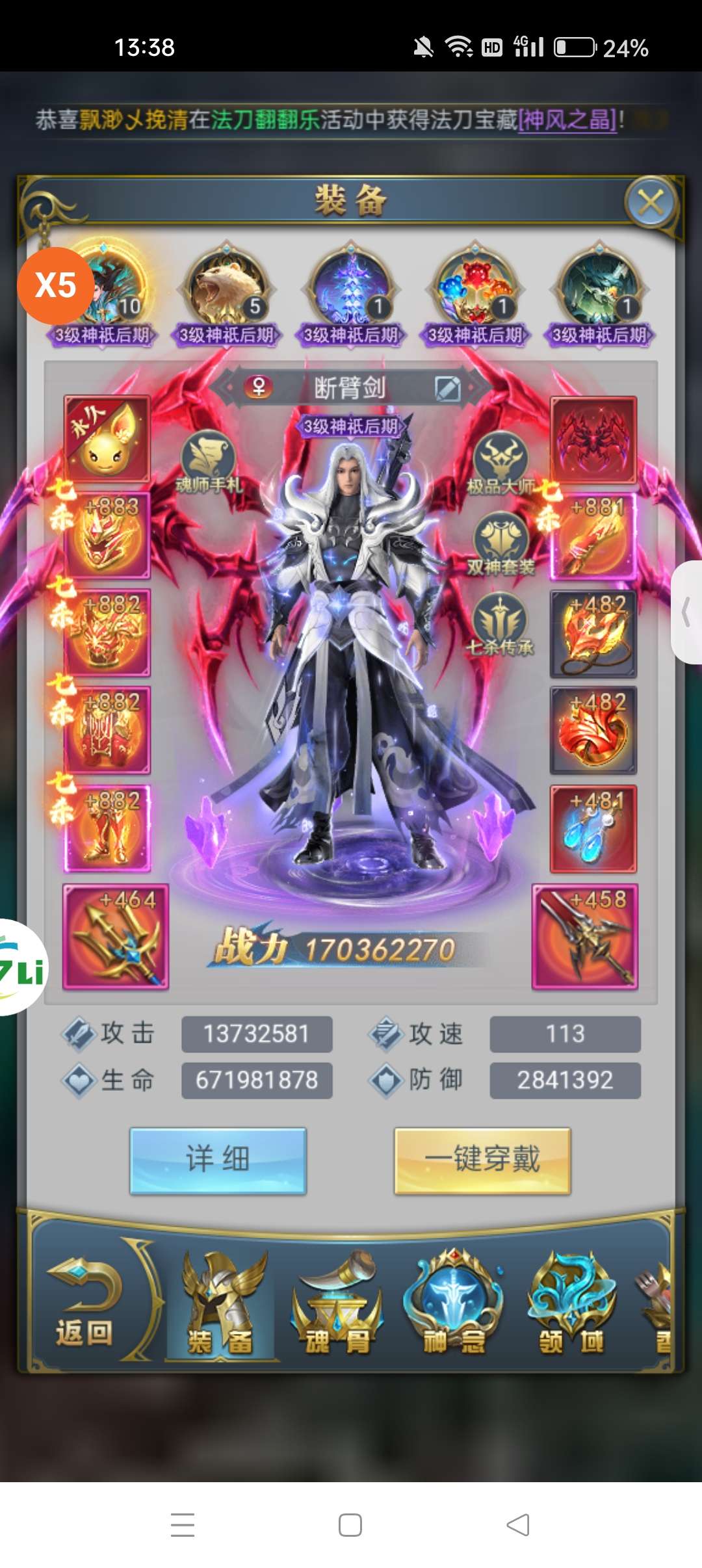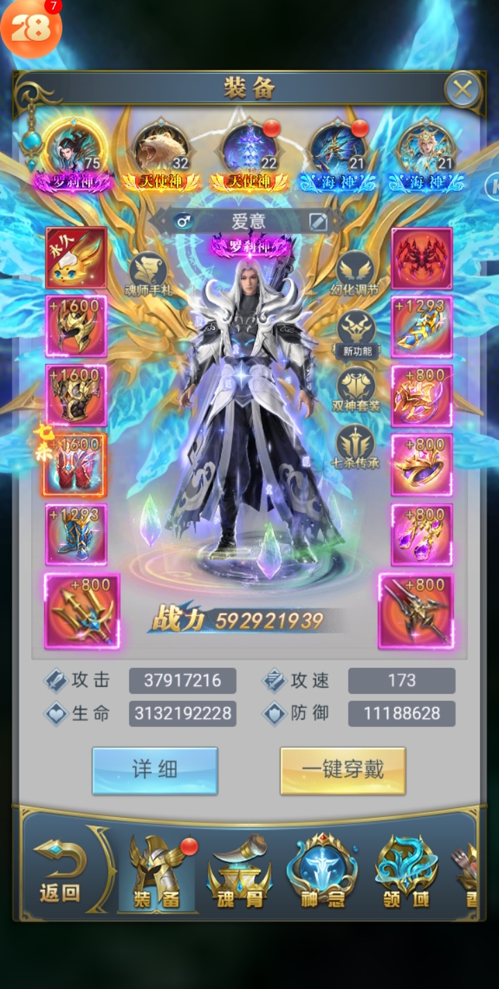 出海神服,全网互通,37亿压战号,可以随便上45亿以上,三套绝魂导器,魂环碎片3000千万