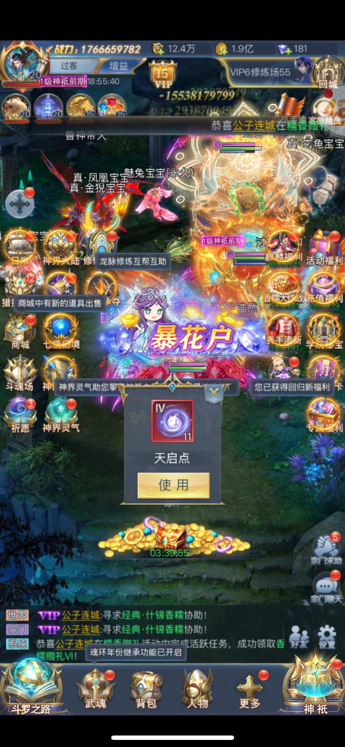 七里游戏 天使集结8服 新区开服一天 紫v8 该买的都买好了 宗一宗主 魂环第一