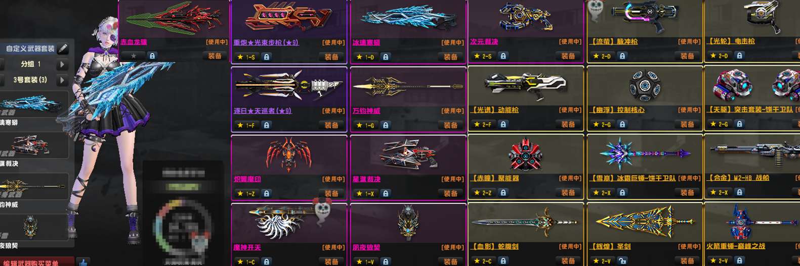 赤月龙骧冰璃寒蟒马神蛇神四件套九星光束天巡!万钧神威星渊裁决夙夜狼契魔神恶魔雷!7把天巡齐,5把光束