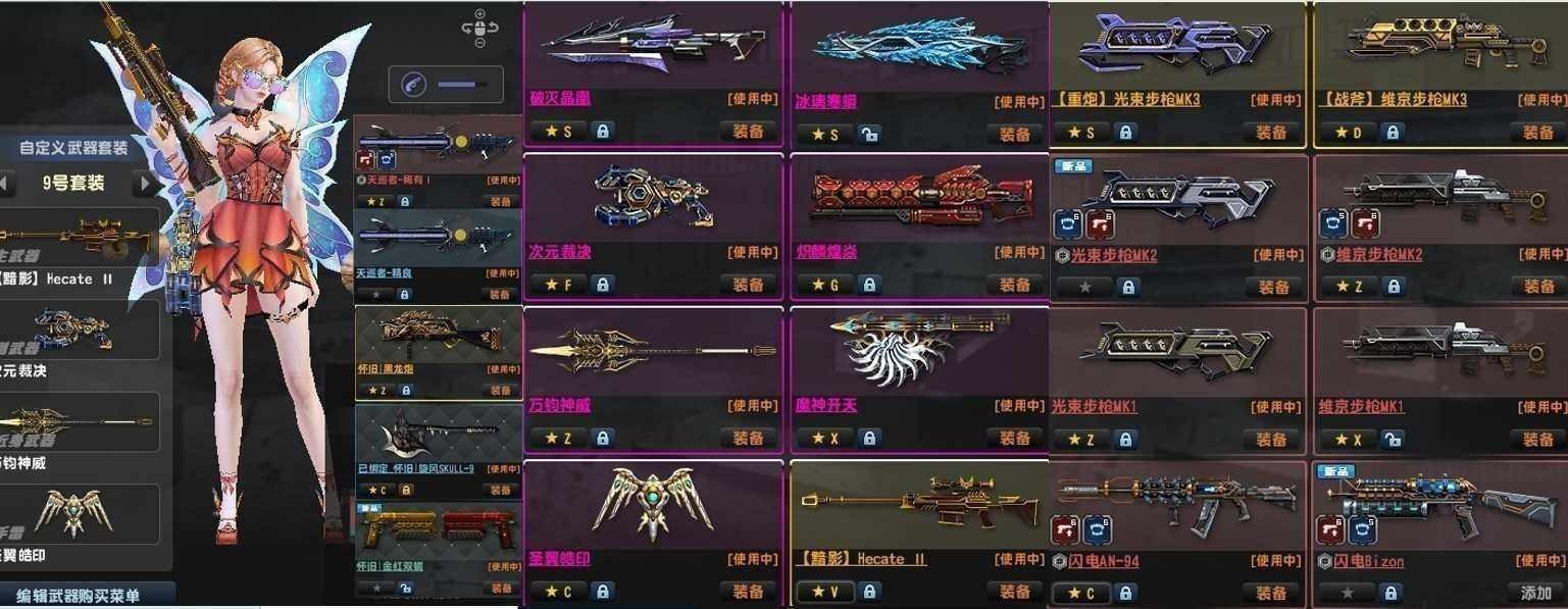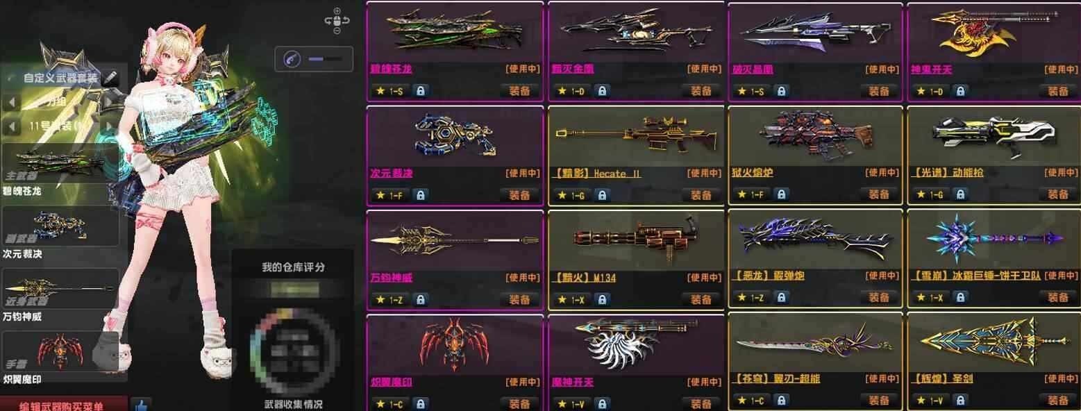 特典暗火兔神龙神四件套神威次元天使雷!光束1,维京全套,双闪电94野牛汽锤!赛季武器有第1,14,
