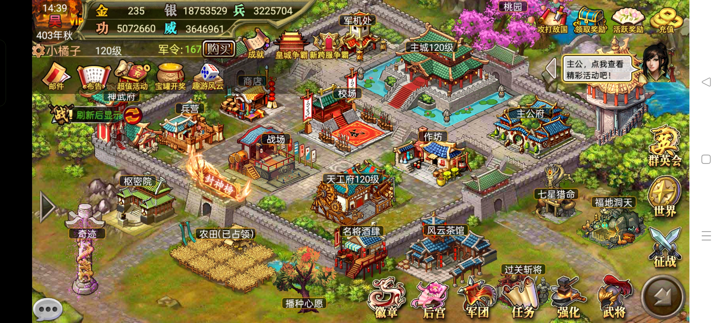 风云天下OL【安卓官方】还价勿扰,金36.5万,酒足够进阶马超或者徐晃或者法正,自带天公张角外加神将宝箱,39势力