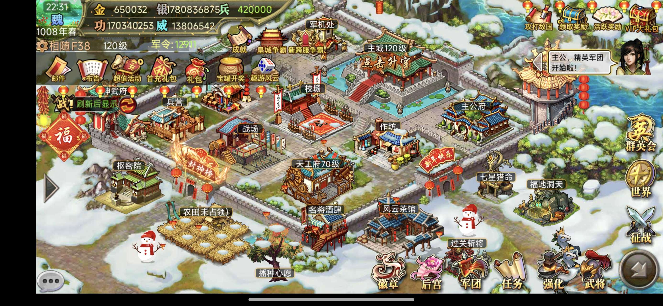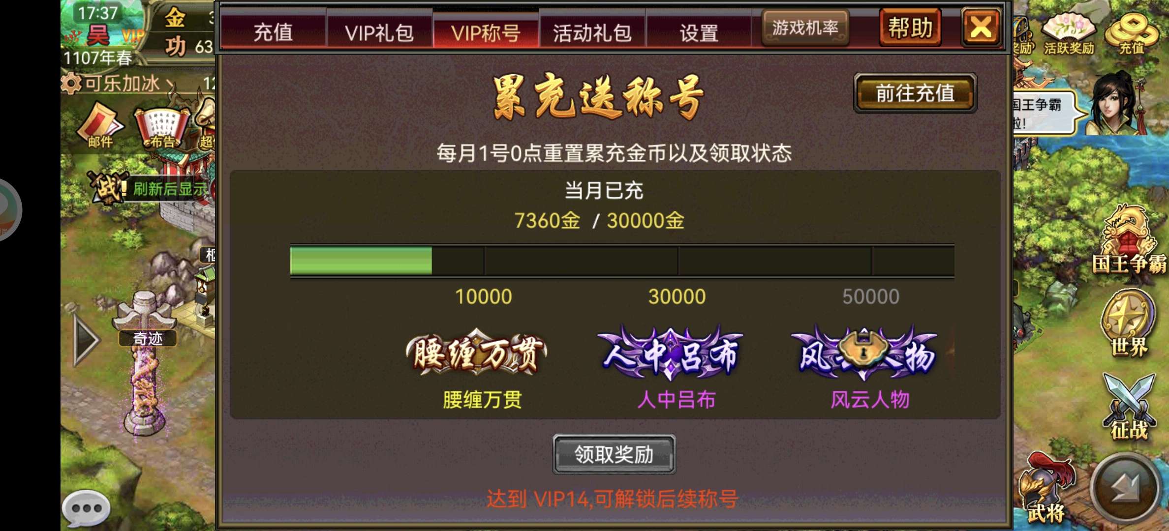 还价勿扰,金65万,自带15万神将战恶典韦,充了老玩家,酒多资源好,夷陵势力