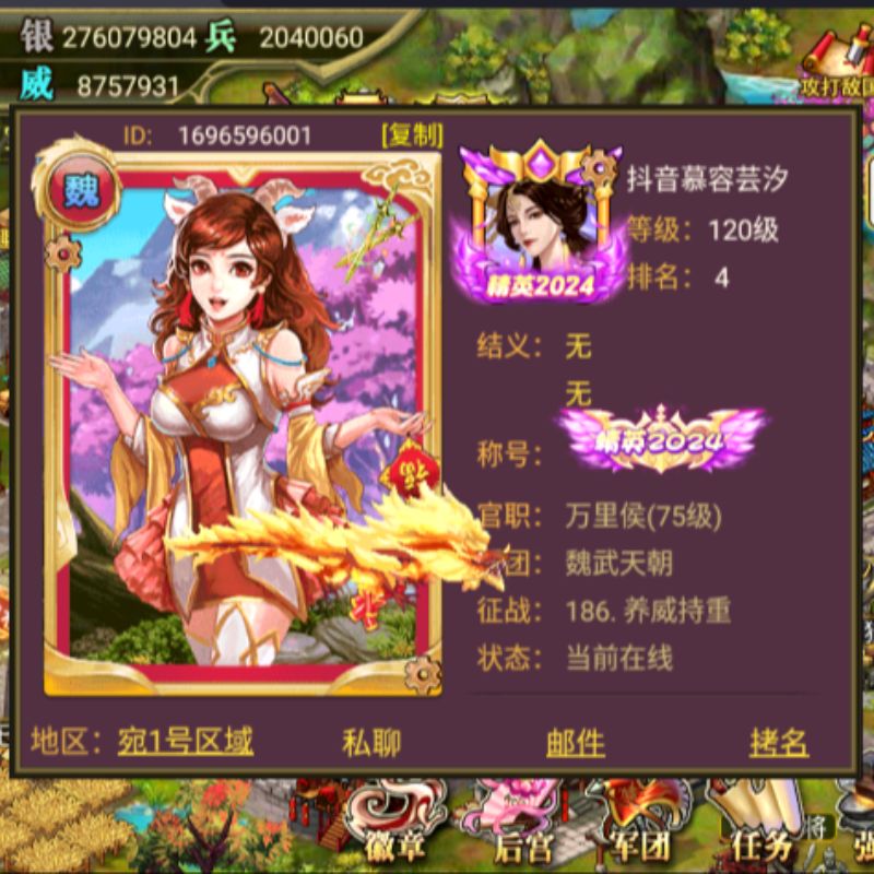 还价勿扰,金47万加,可以邮件客服改名,自带15万神将天公张角,夷陵势力