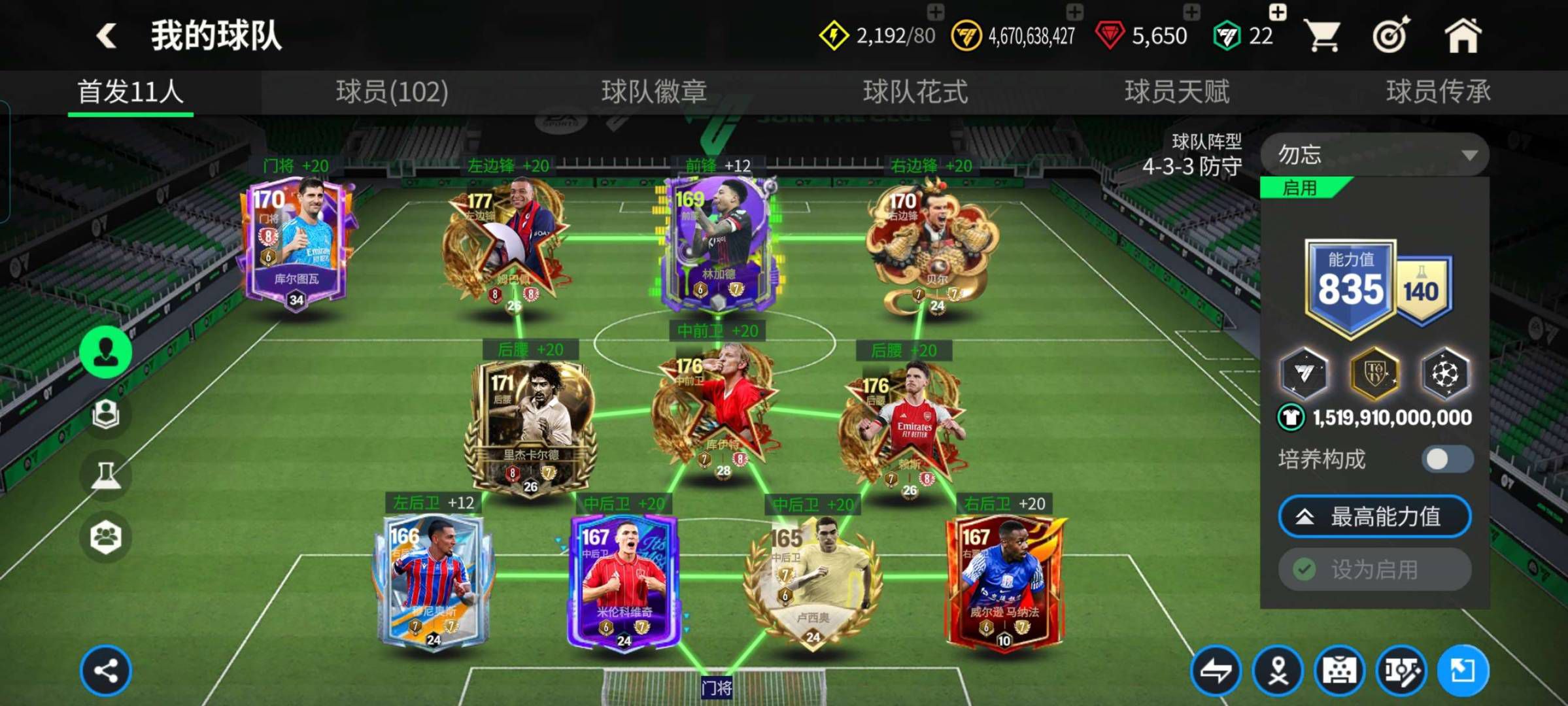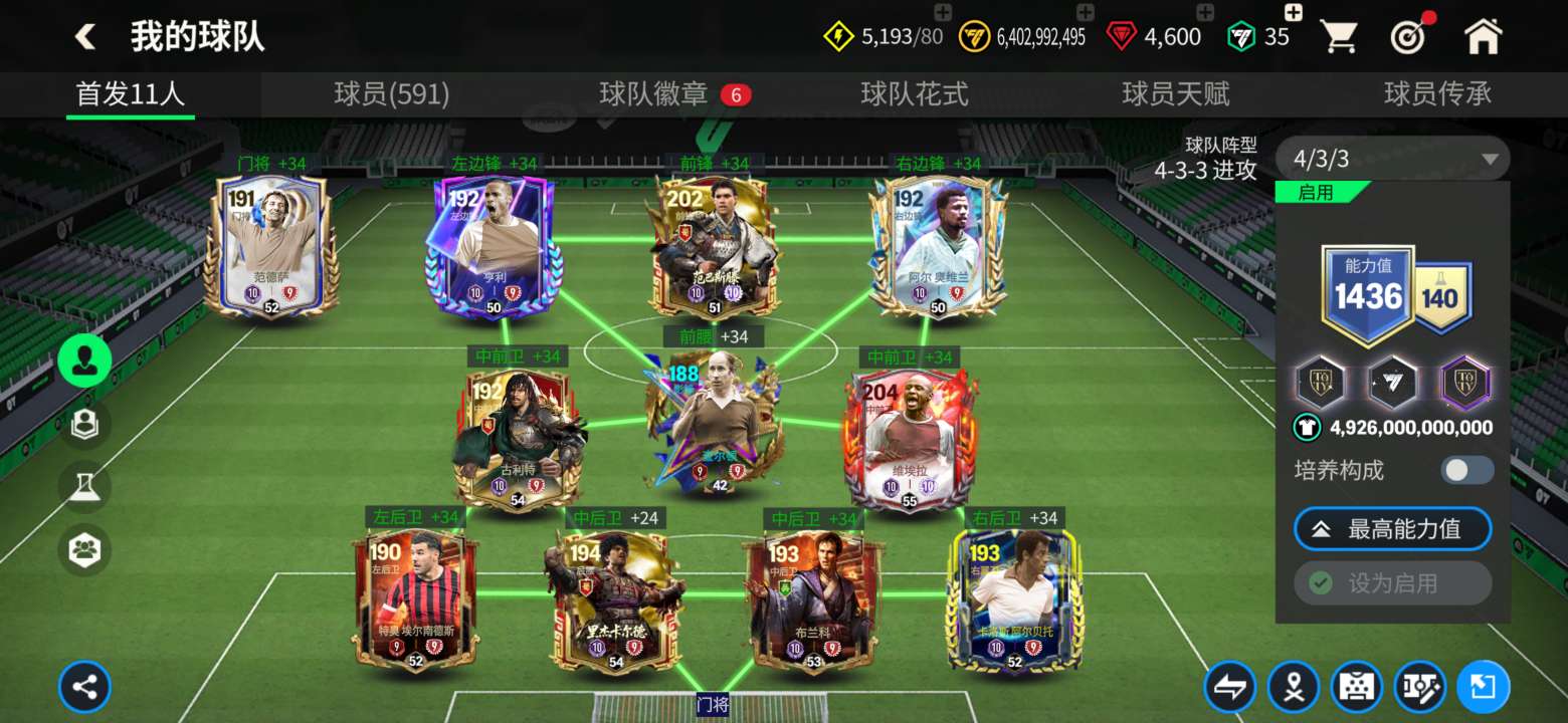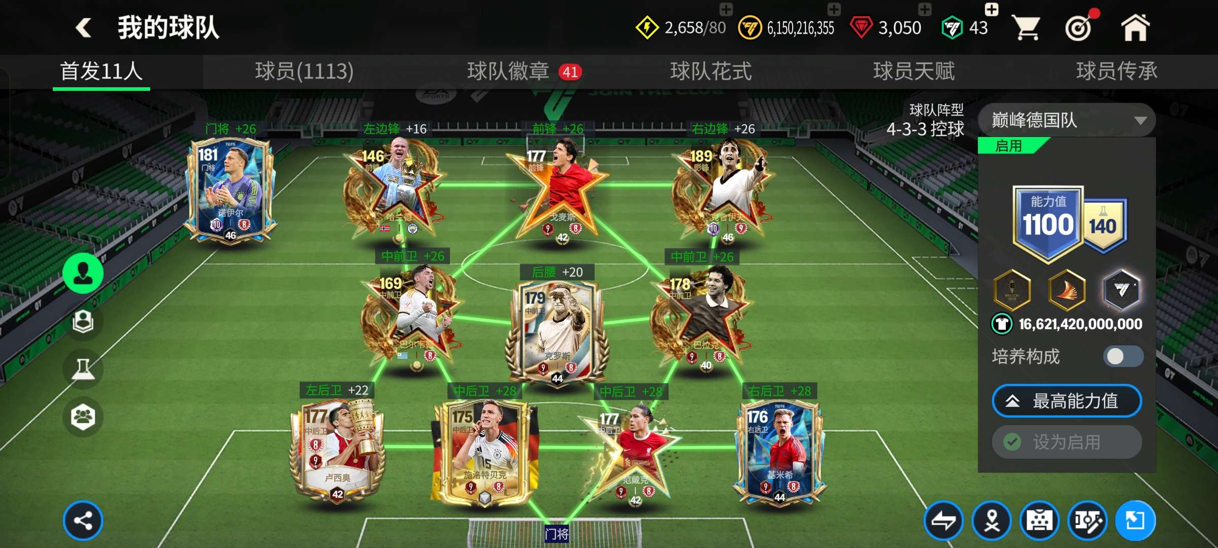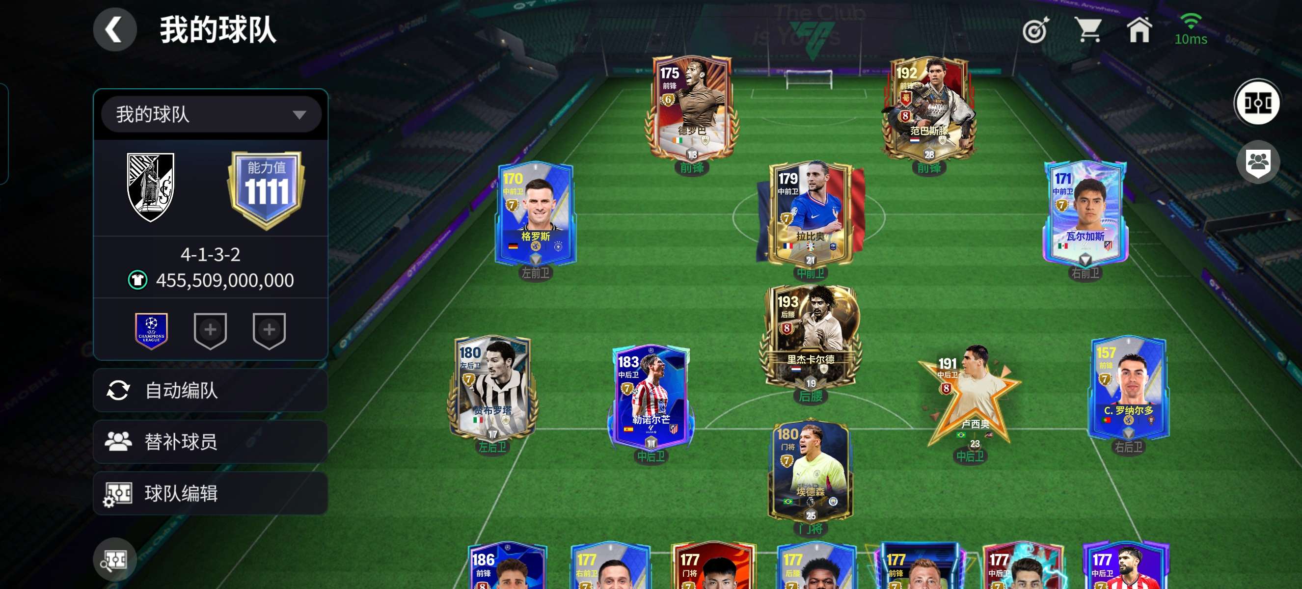1个148,7个147,4个145,3个10阶,其余全部9阶,天赋超高,特训50+,除了查尔顿全部卡