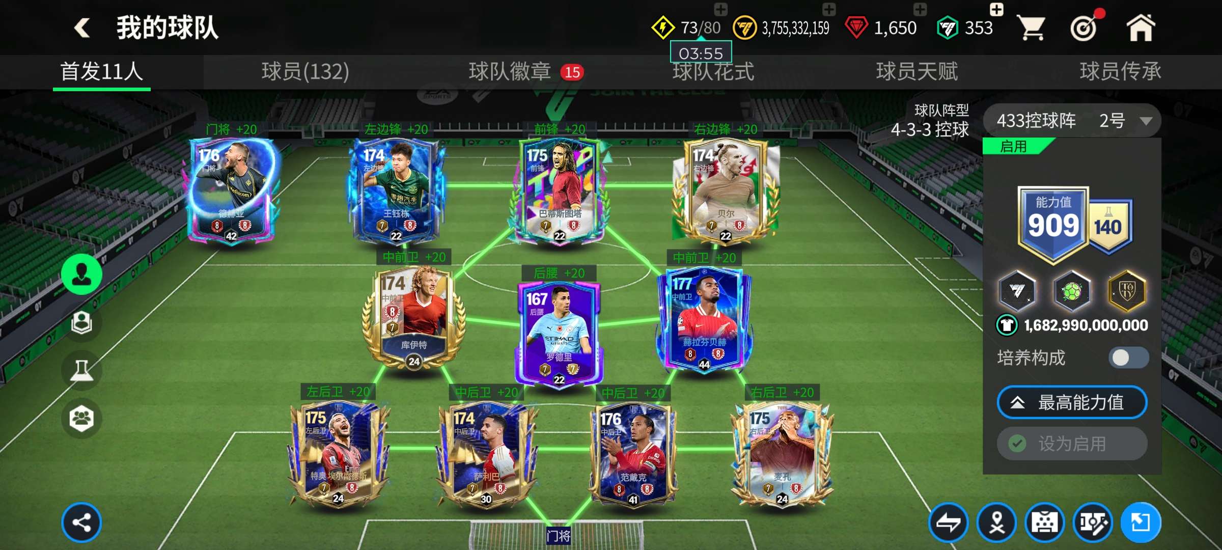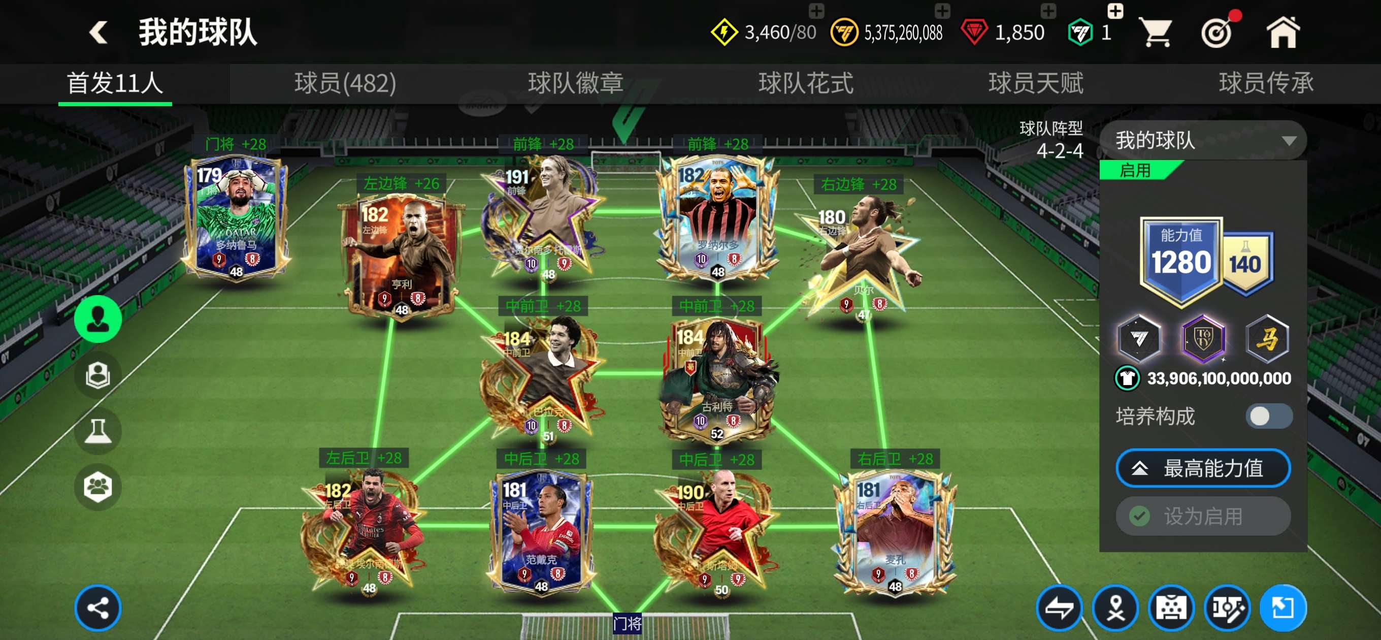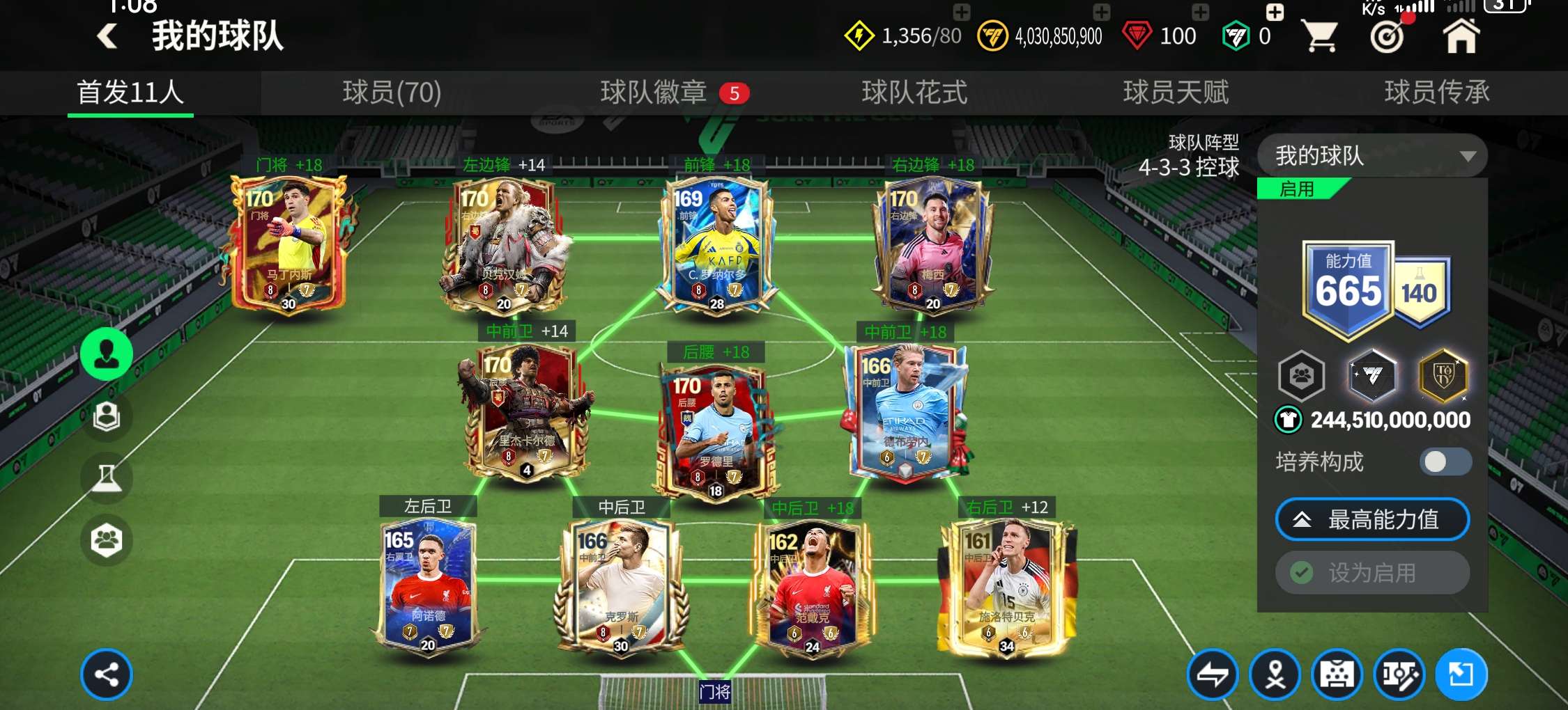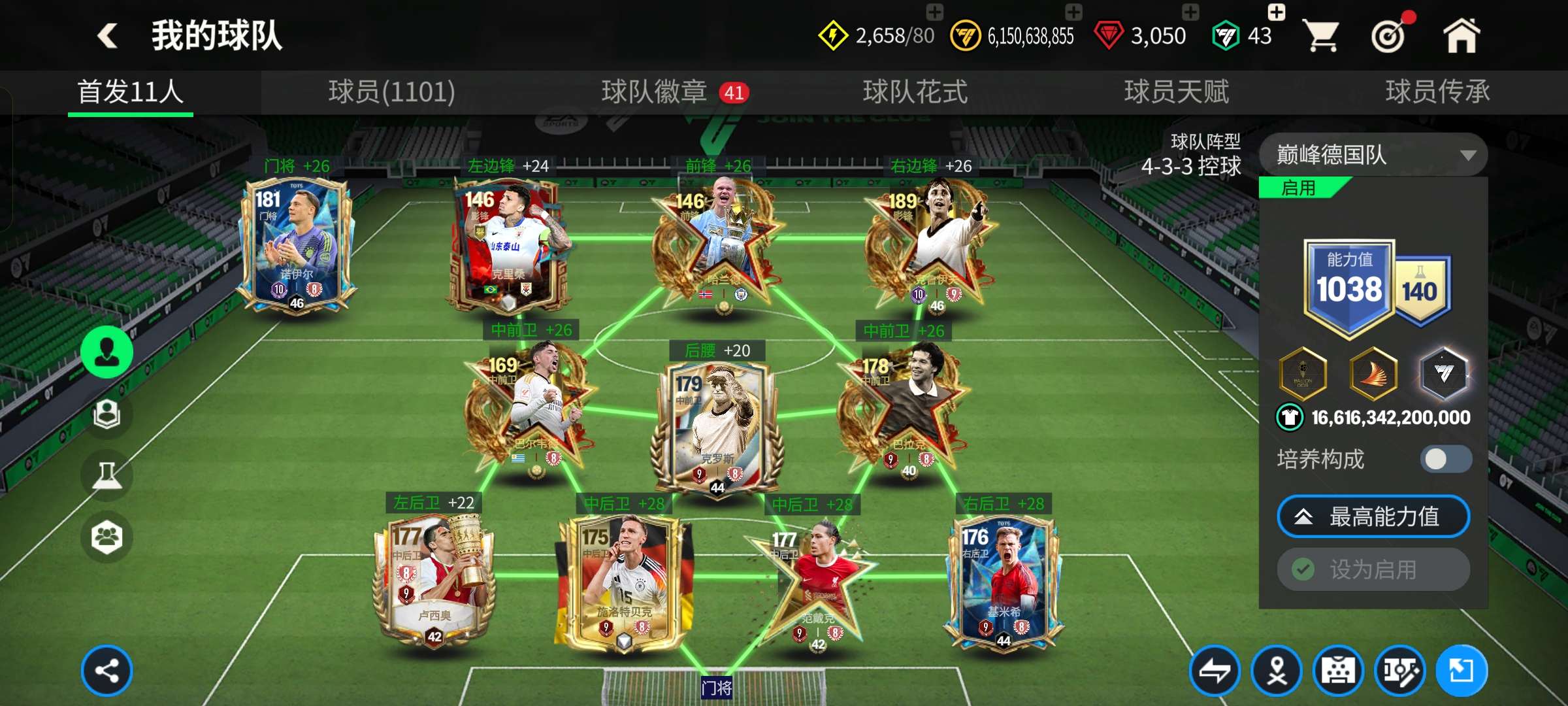 1个148,7个147,4个145,3个10阶,其余全部9阶,天赋超高,特训50+,除了查尔顿全部卡