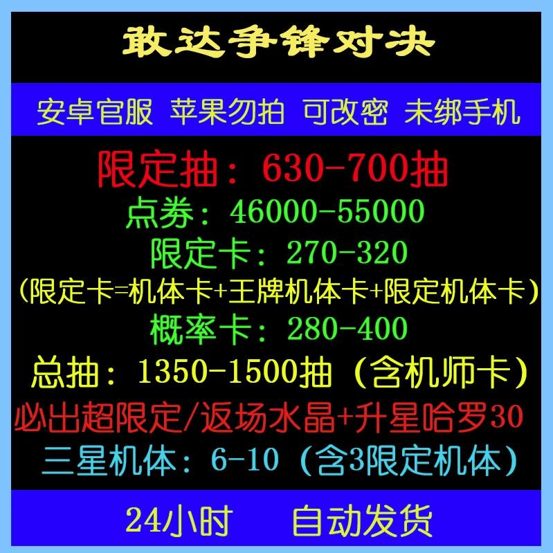 敢达争锋对决【安卓官方】安卓官服随机区650限定抽:47000点券+280张限定卡+250张概率卡+7个三星