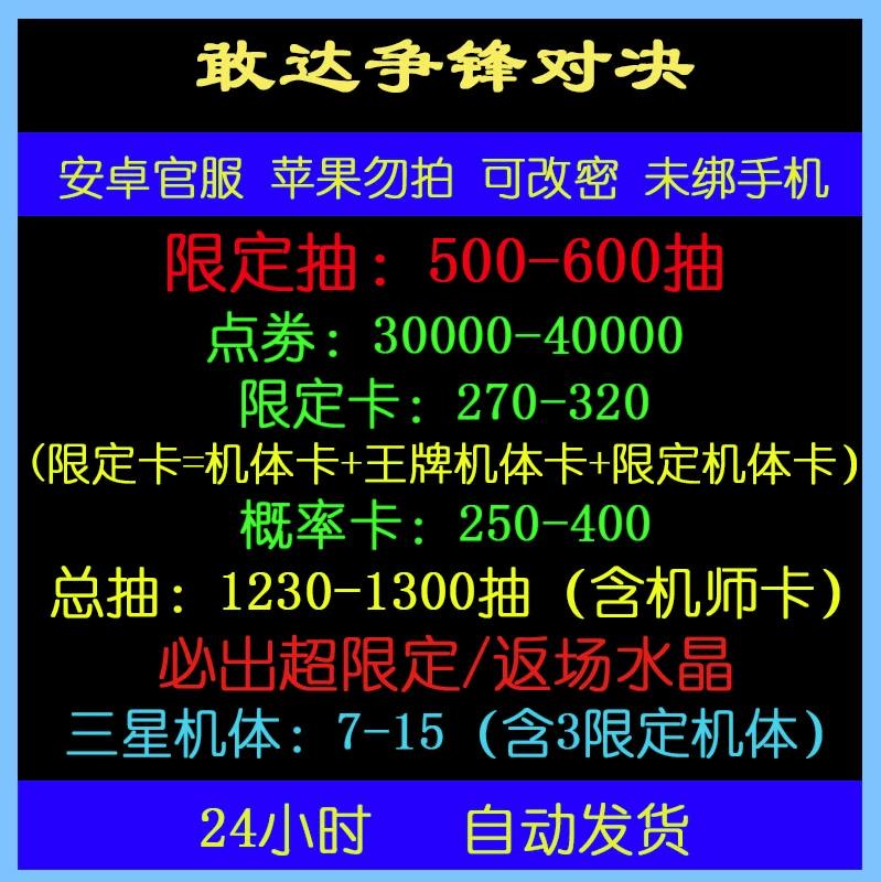 敢达争锋对决【安卓官方】安卓官服随机区500限定抽:30000点券+270张限定卡250张概率卡+7个三星