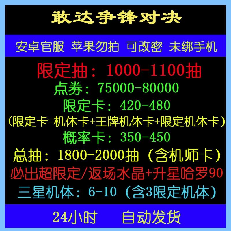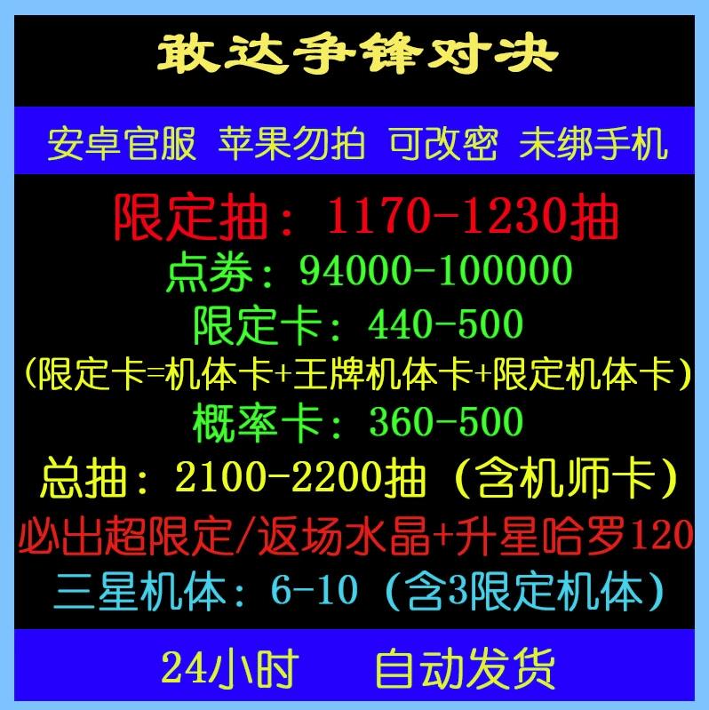 敢达争锋对决【安卓官方】【带三星机体6-10个(含3限定)】单号1800-2000抽,点劵7.5W-8W♦限定抽1000+