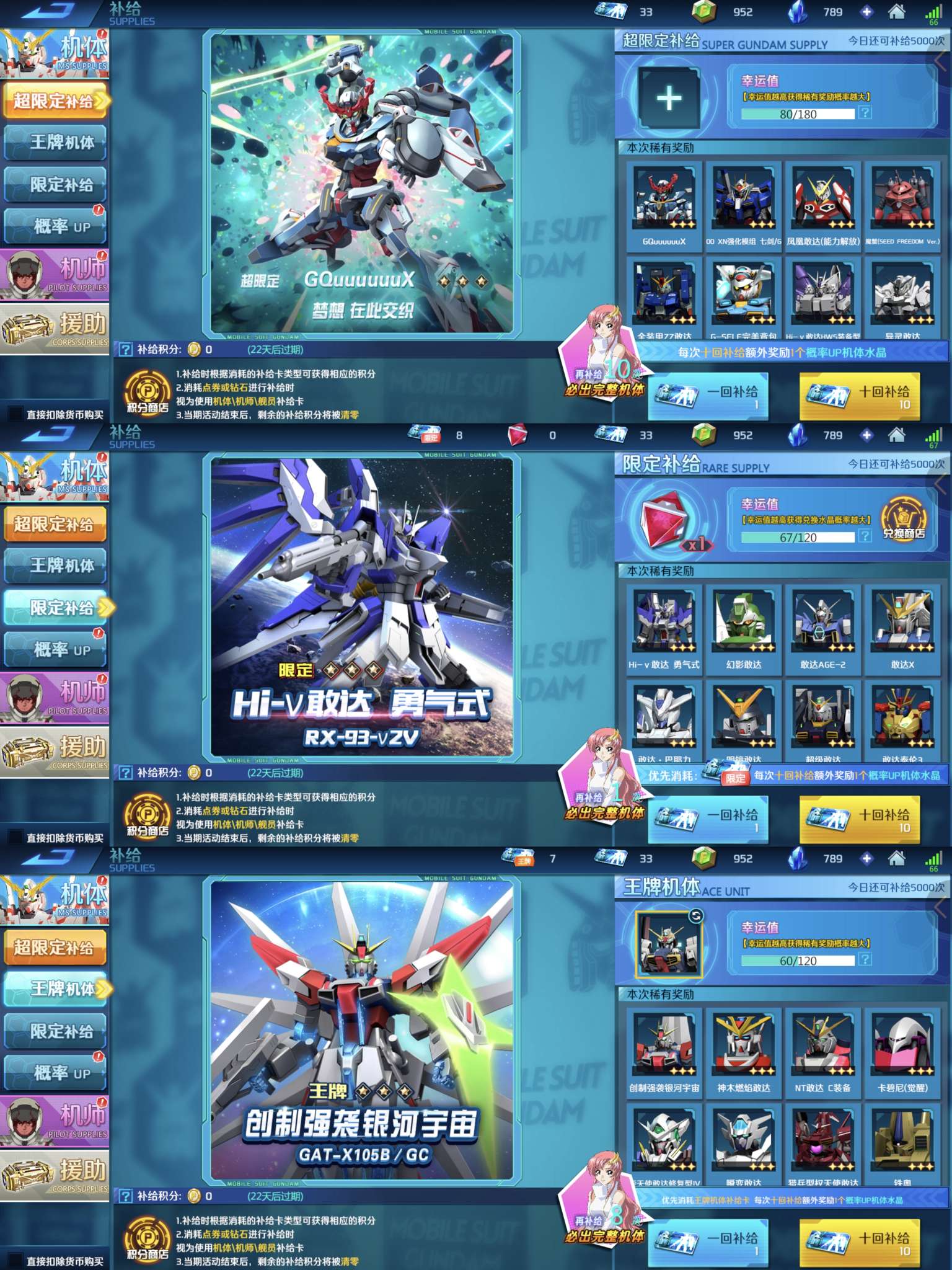 600-550抽♥1-3三星机体♥7000-9000点券♥200-170限定抽♥
