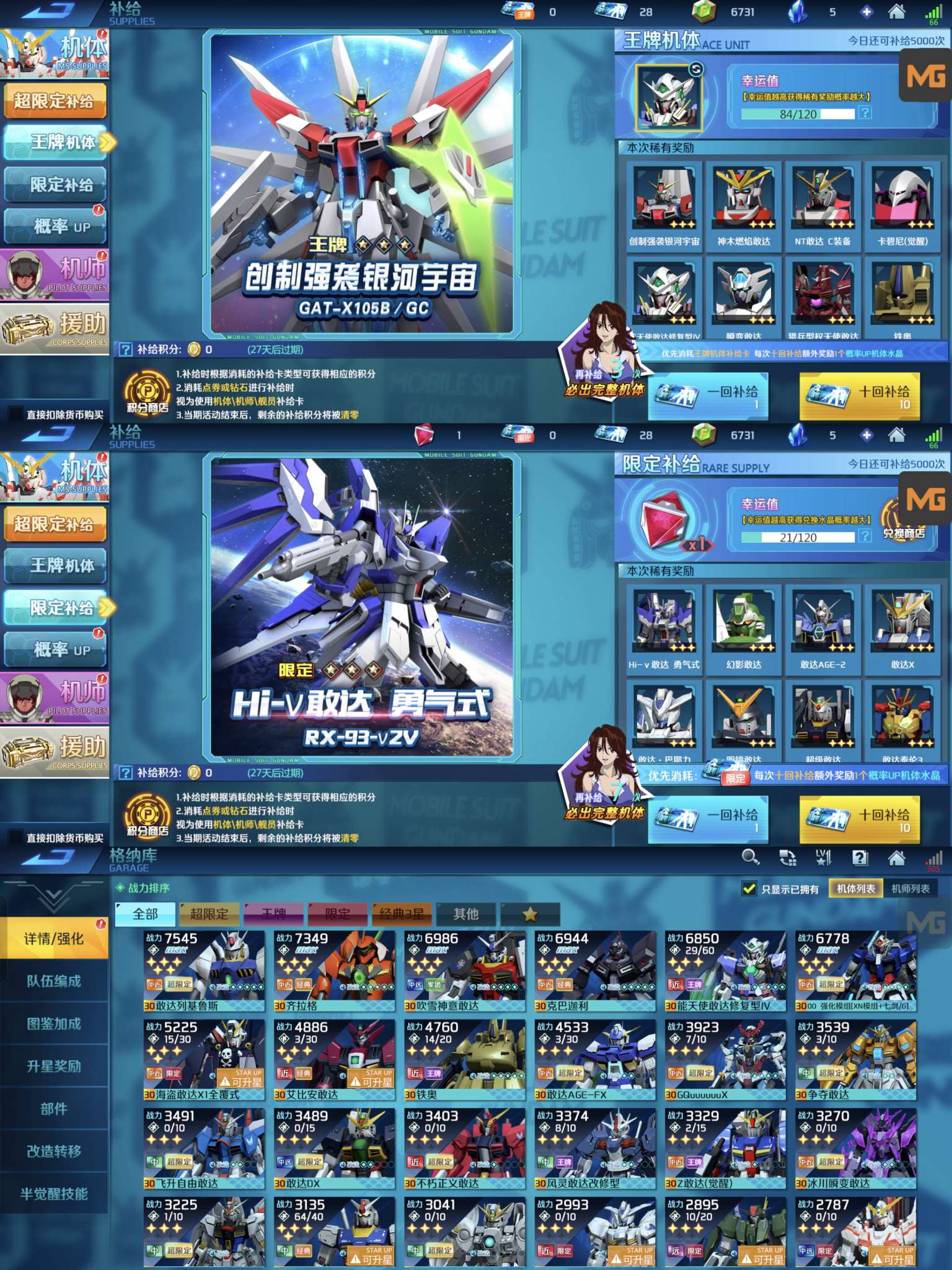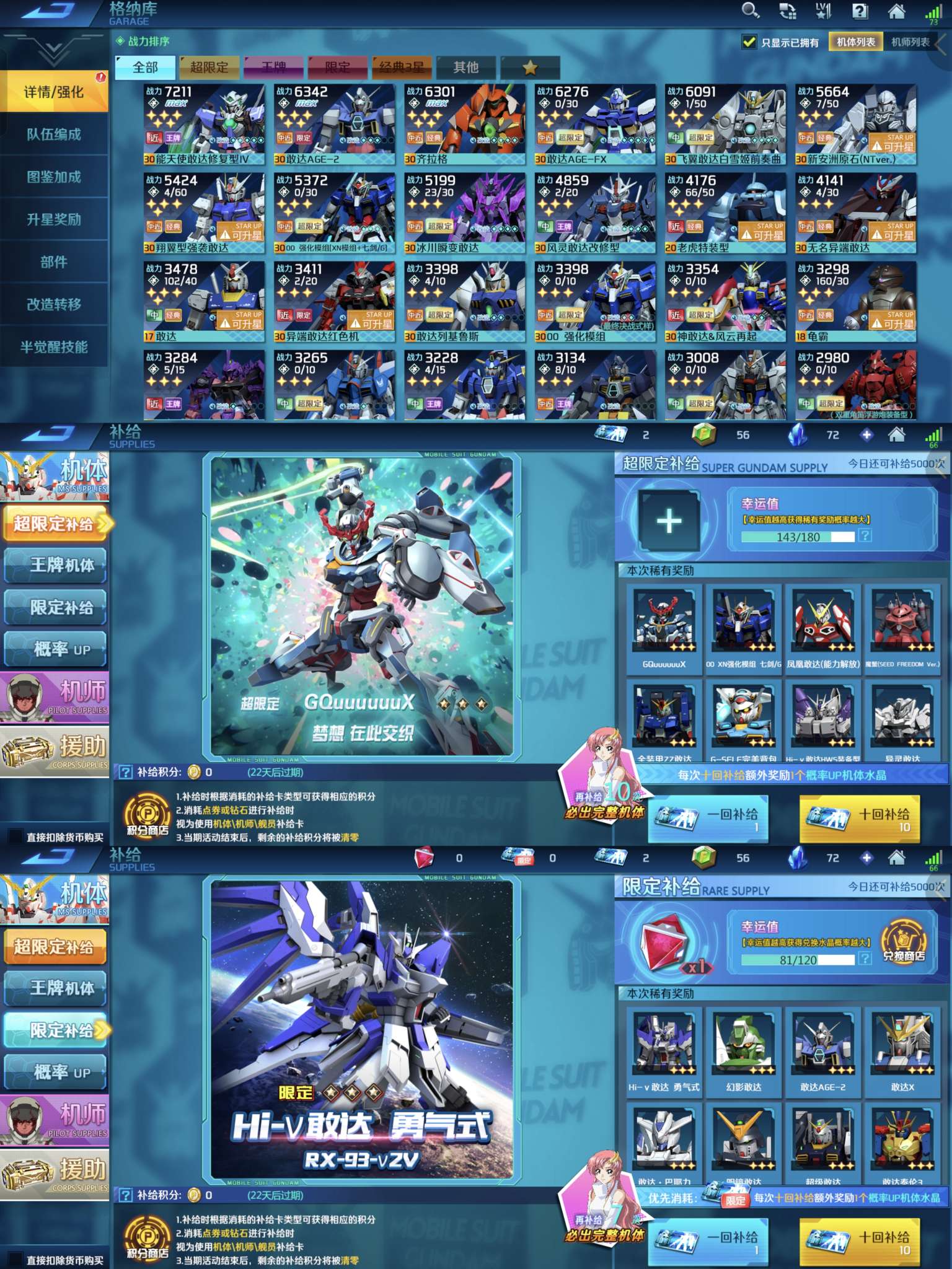 250-220抽♥♥1-3三星机体♥7000-5000点券♥220-180概率UP卡+限定卡