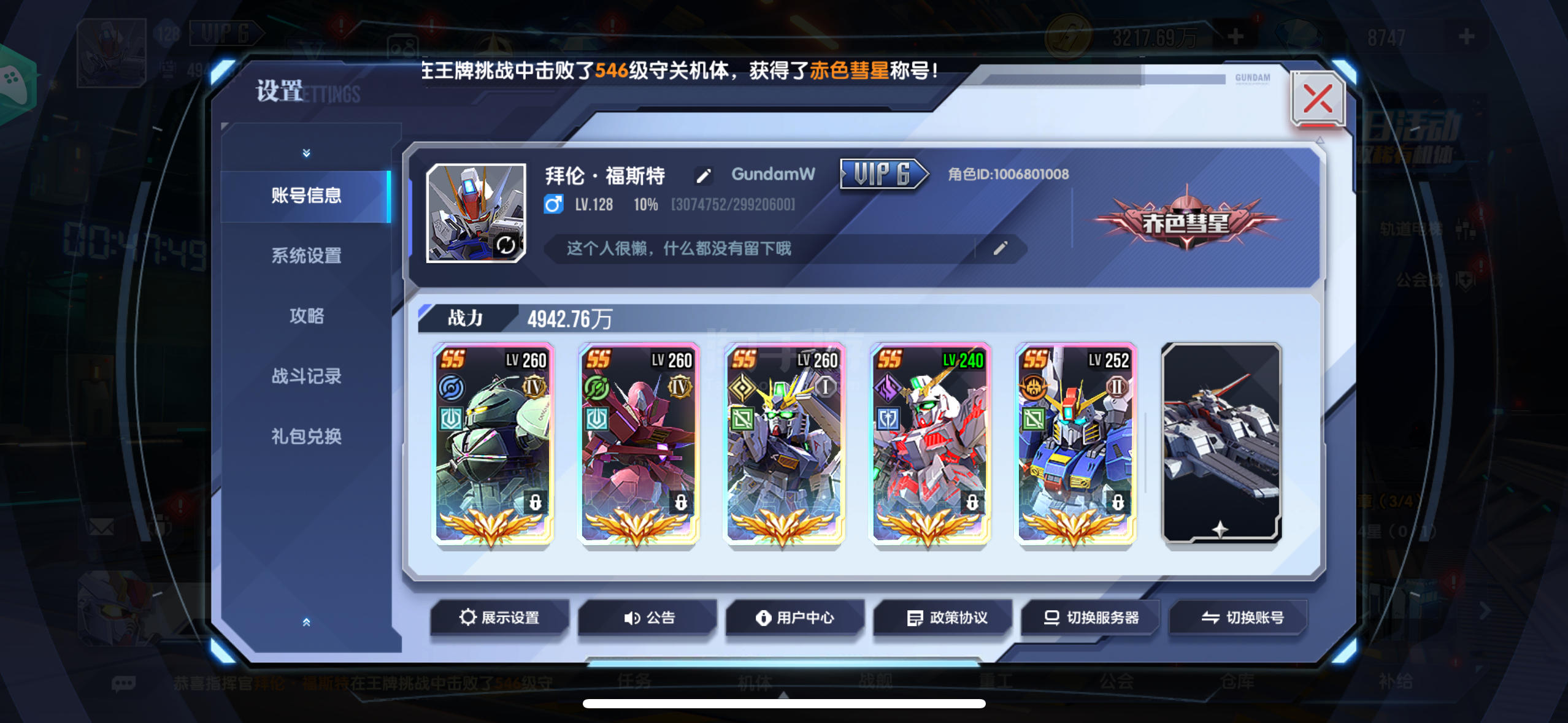 官服新区共287抽+飞翼+夏亚+SS 6800钻石222高级
