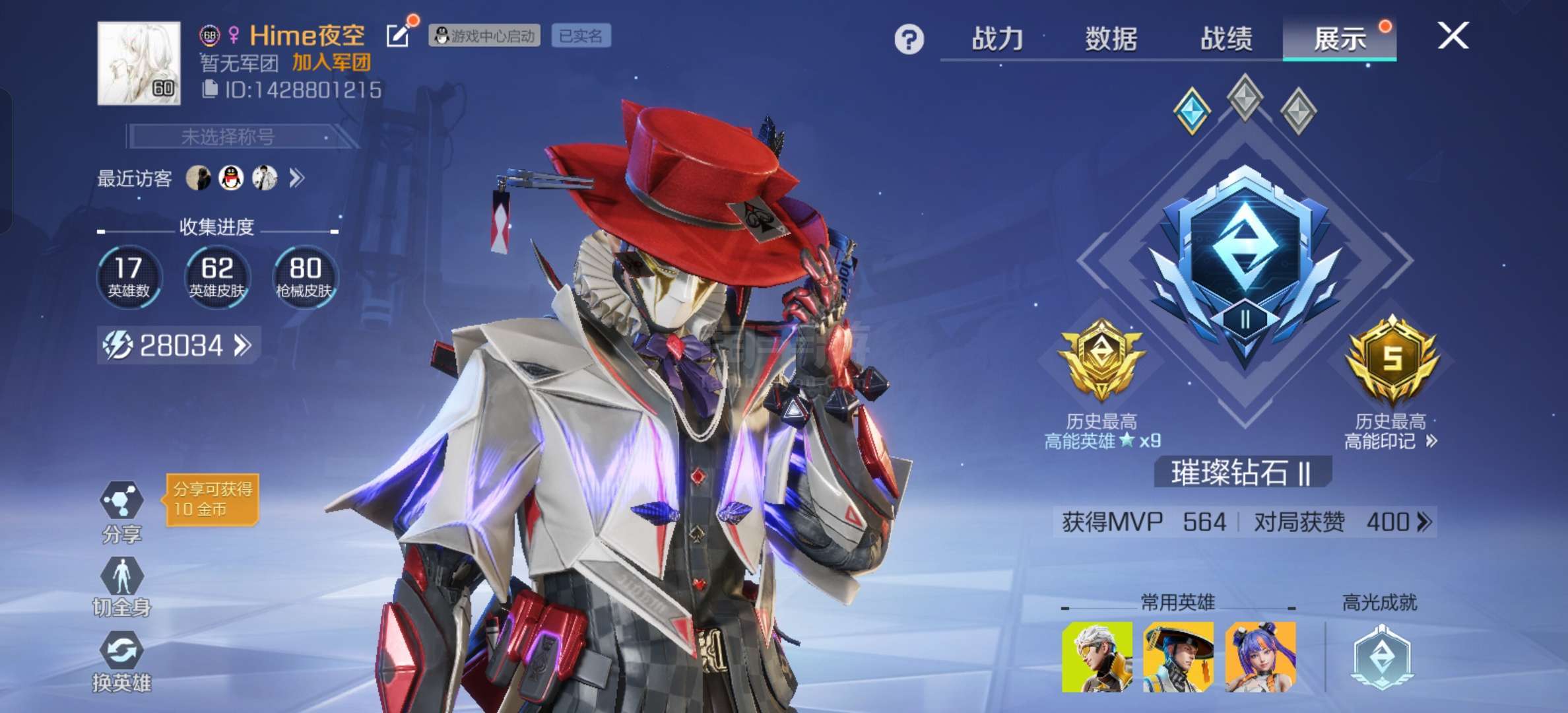高能英雄退游老玩家账号 S1~3赛季全手册 俩款传说皮肤 传奇标志