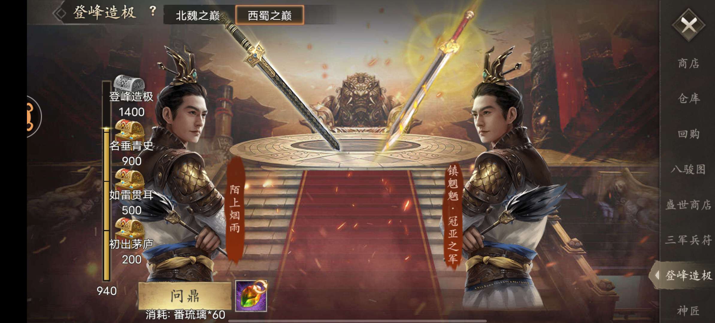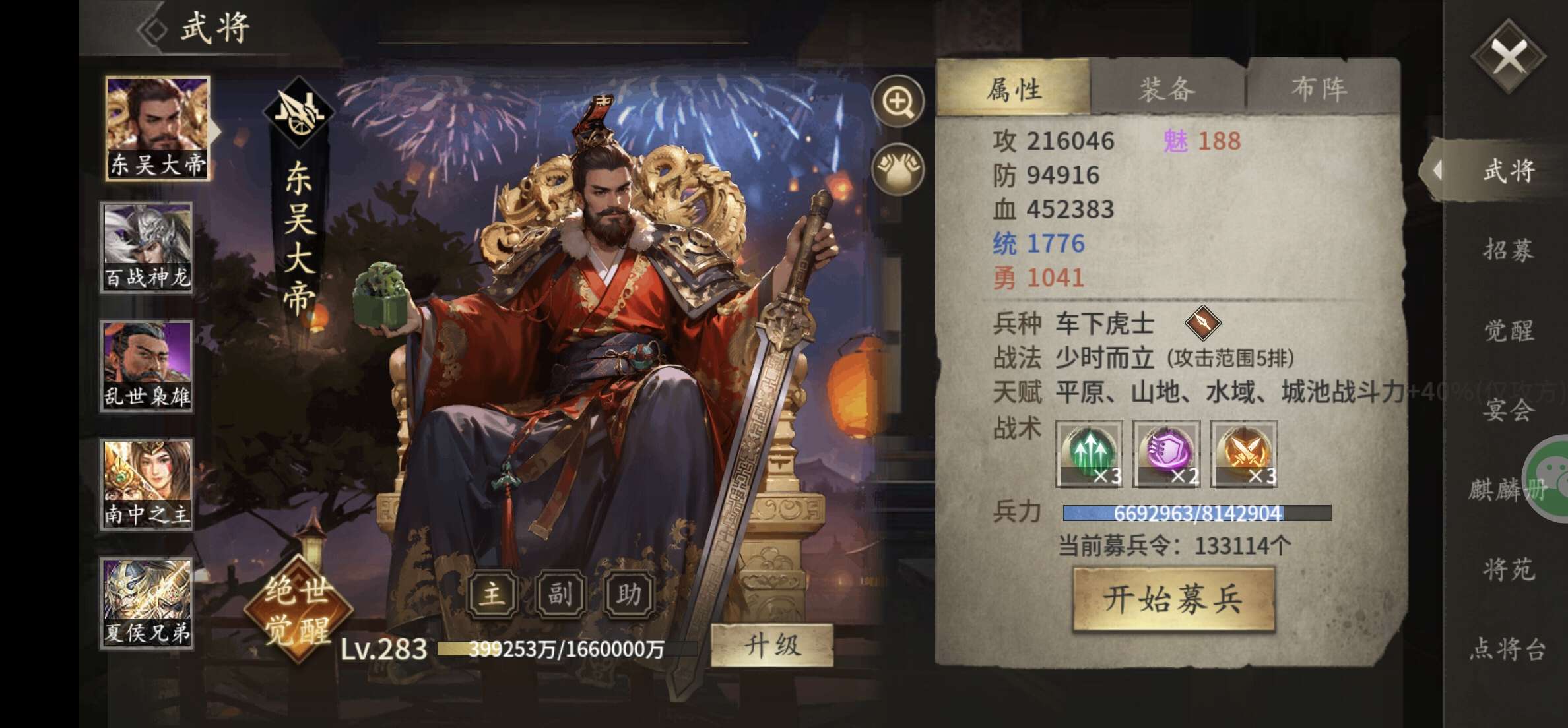 国一85万7层周瑜带鼎,魏武大帝 蜀汉皇帝等 觉醒拉满 阵法1个600 3个400 汉 魏旗30级