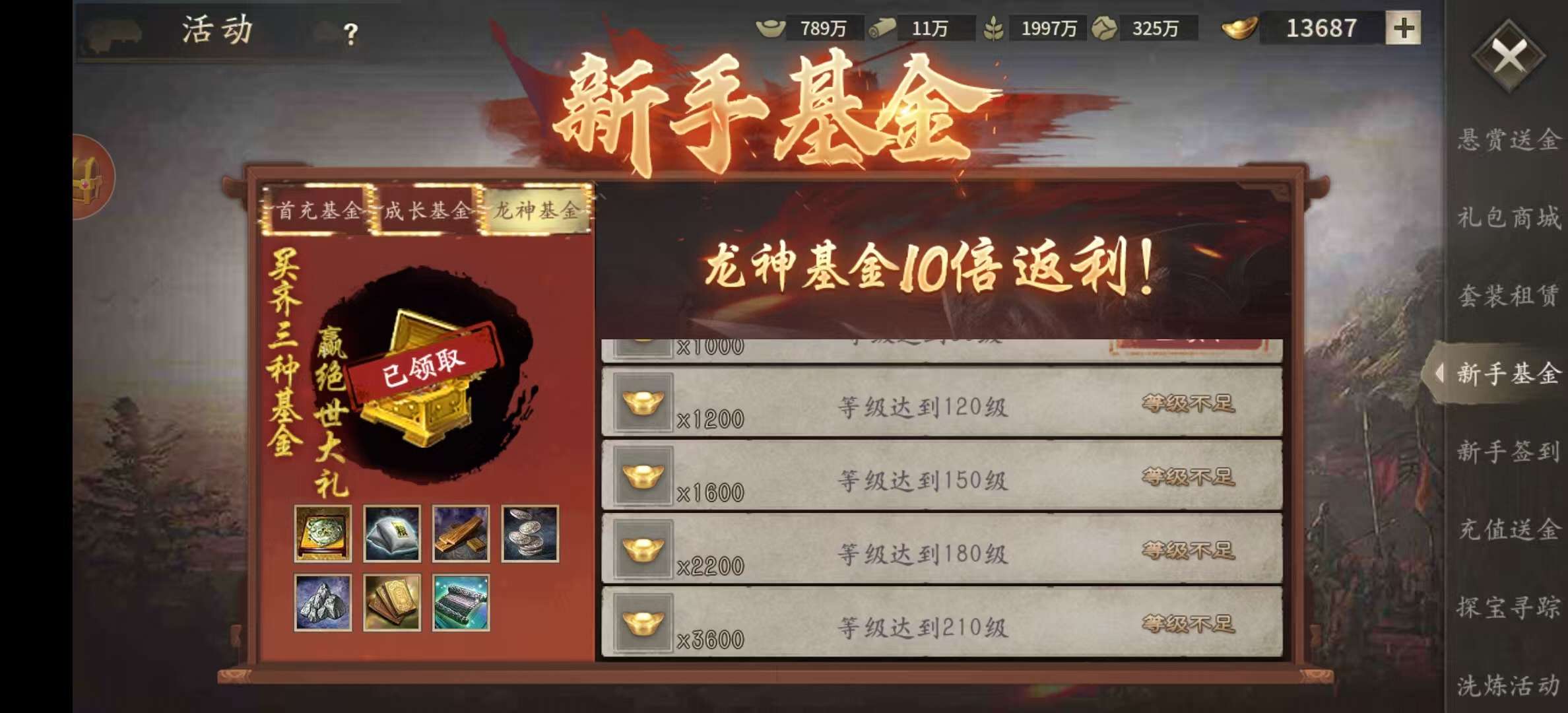 4005刚开一天区,满基金月卡。金币没动。充值优惠大