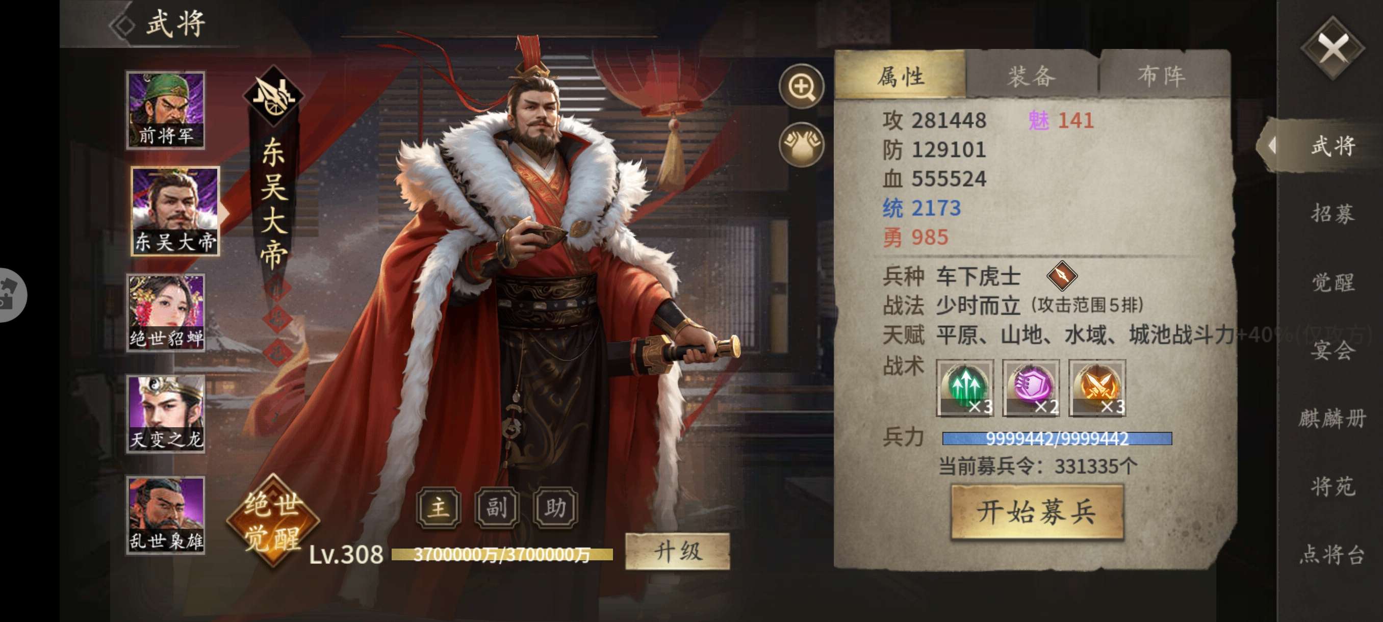 满配皇帝+6.3武圣+5技鼎+武钢车,详细看图
