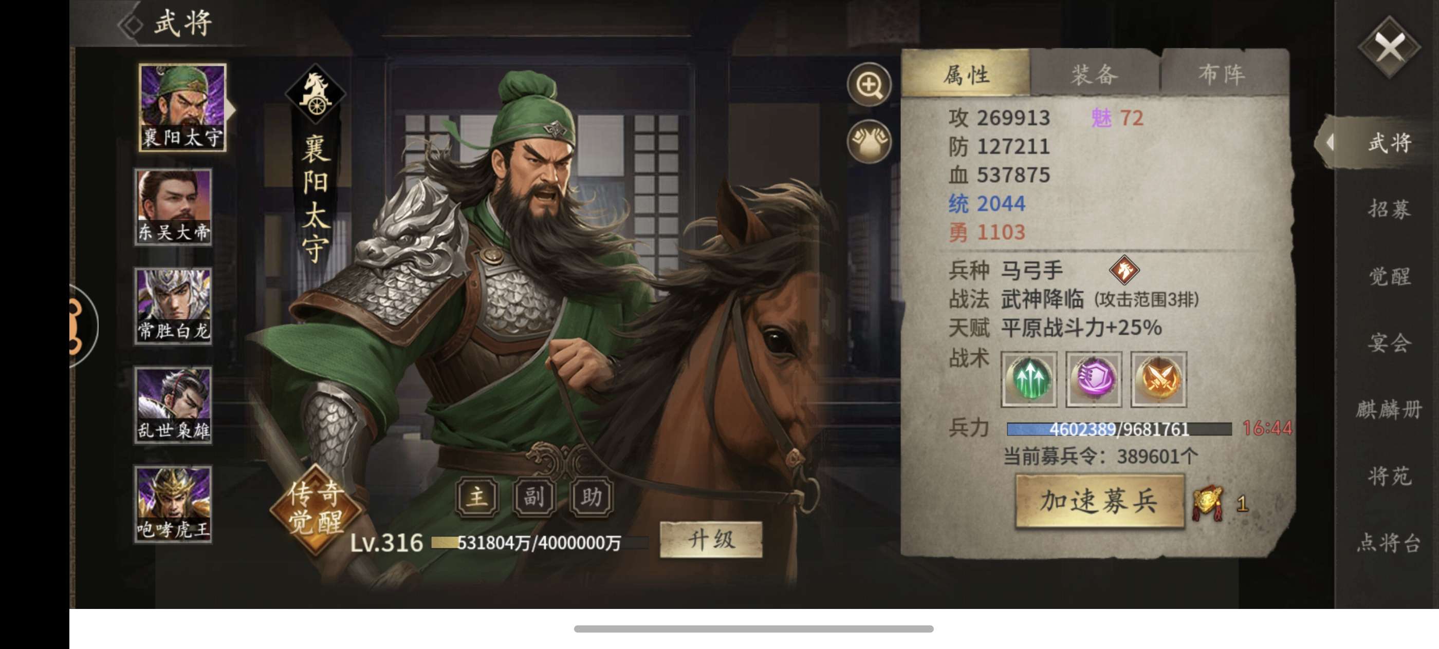 蜀国一品93万大帝,武圣关羽,带15万金