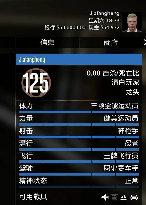 GTA增强版本线上模式拥有5亿多金币随便花,等级1699,满属性全解锁,地堡51项科技解锁,超多车库