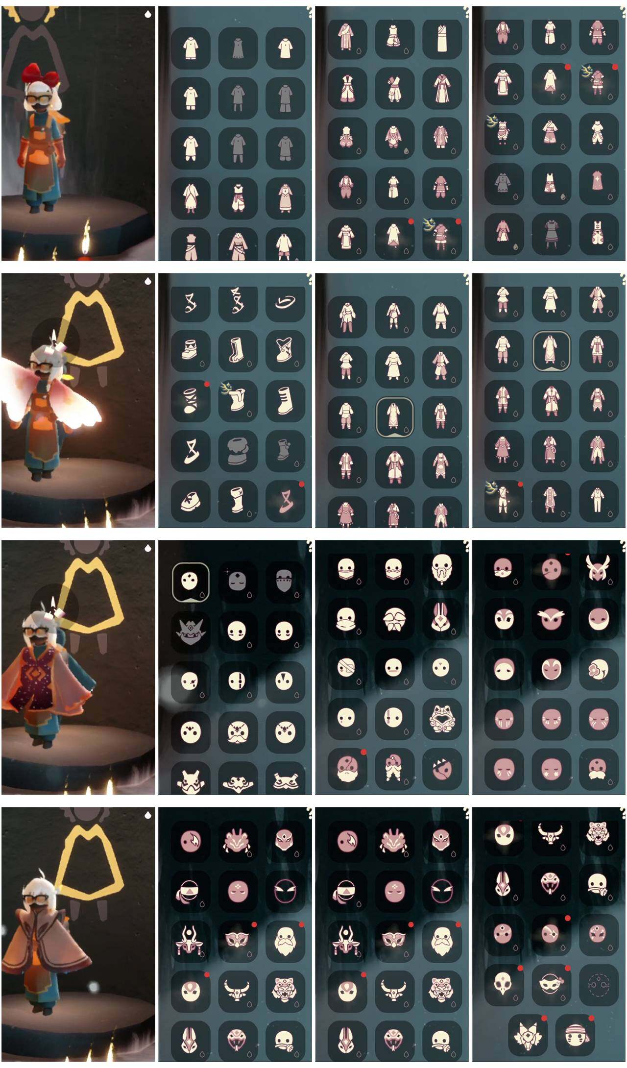光遇安卓虚荣+黑脸+白斗+阔腿裤+相机+随机翼七门已开,全先祖,大部分向导任务已做