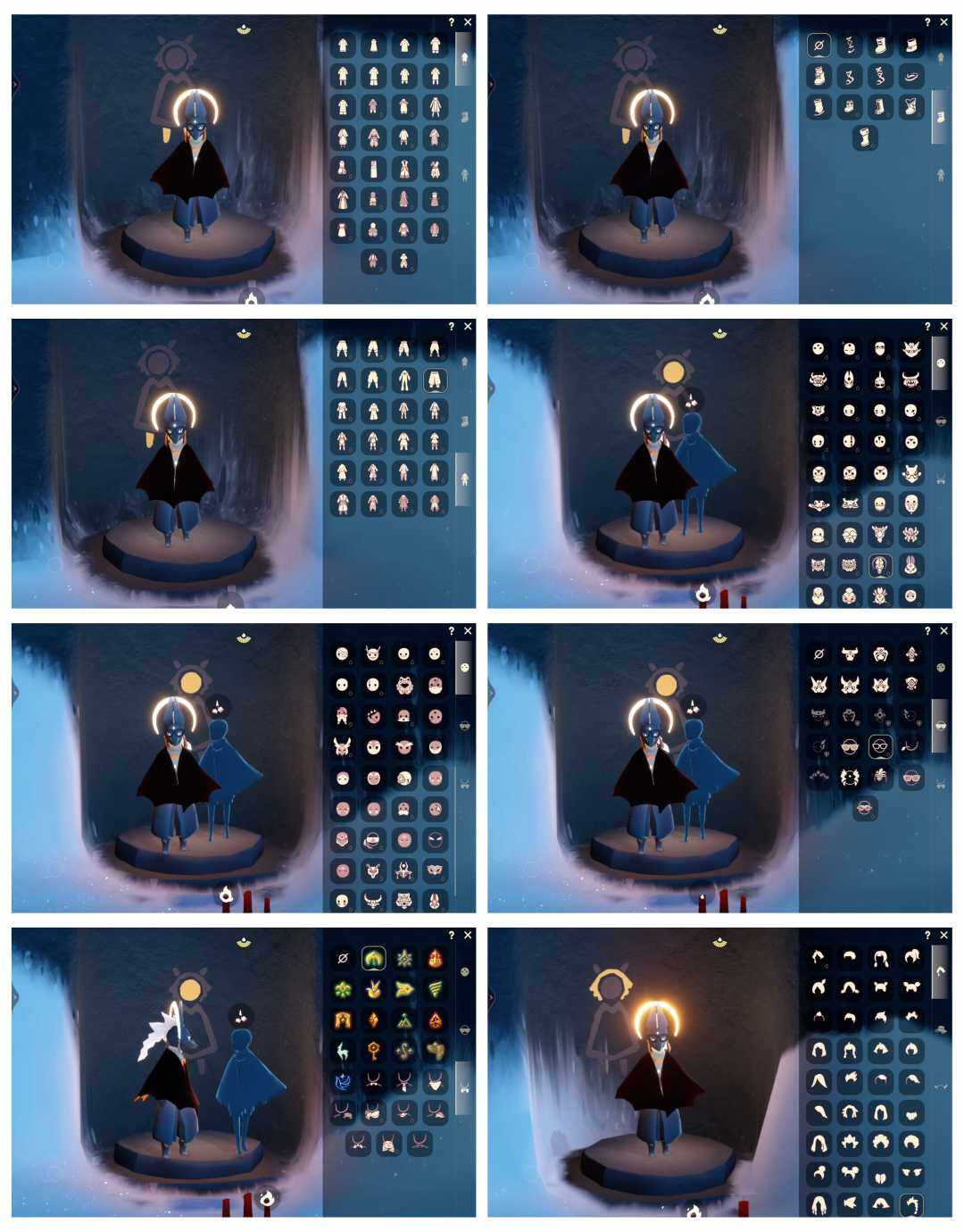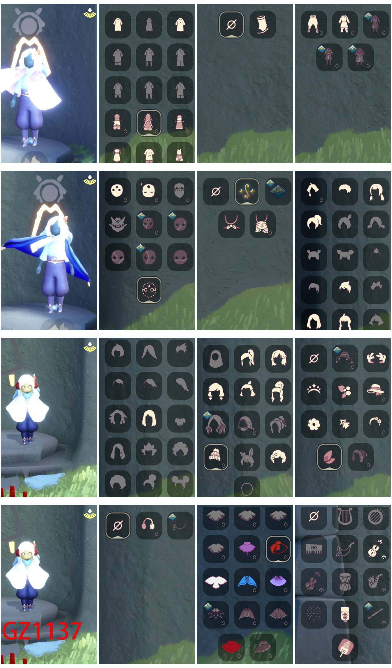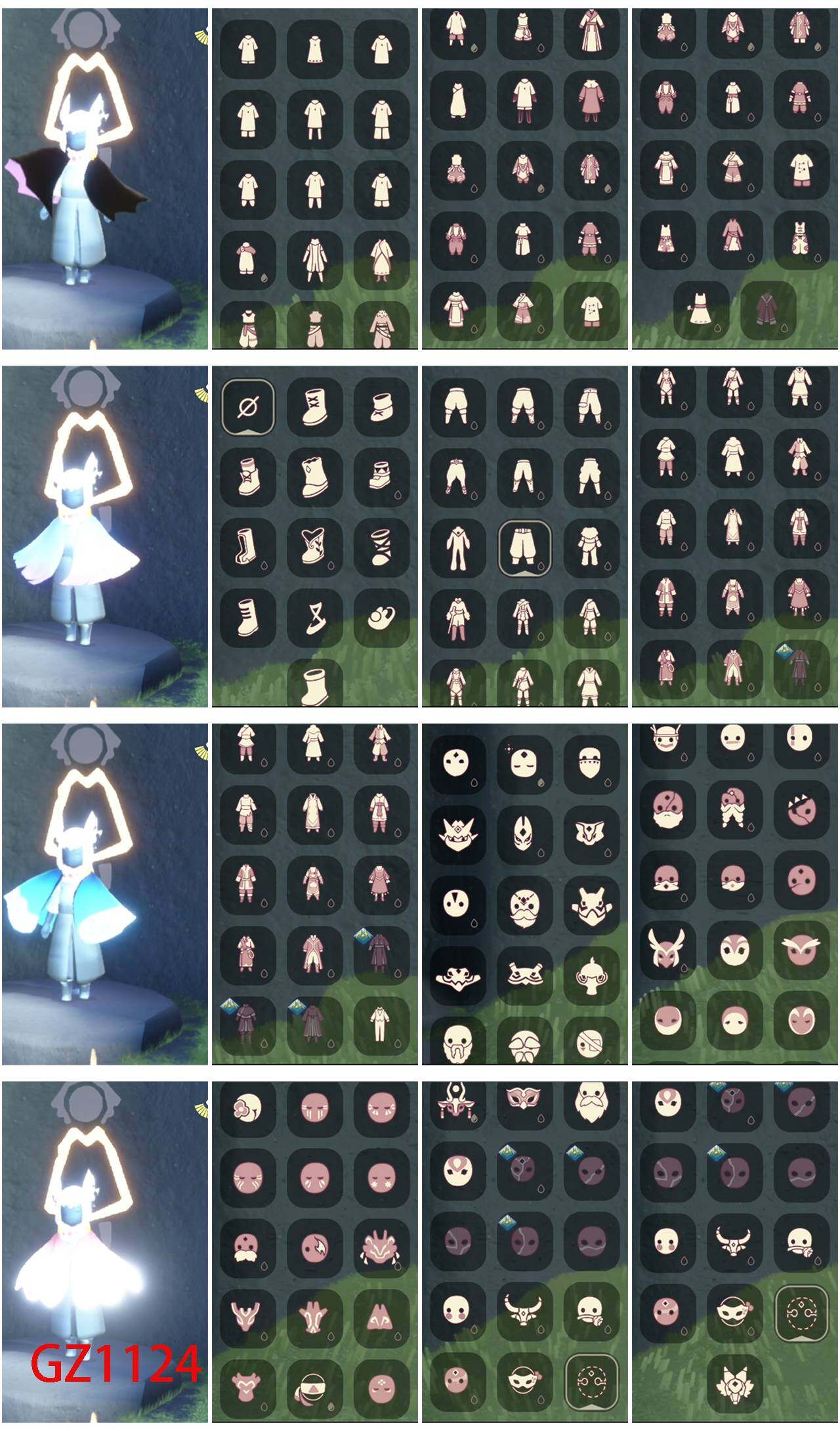 光遇官邮[十翼]花环发型十黑脸十白斗帮大家寻找到了120个小光人10个大光翼装扮任选详情图二秒发货。
